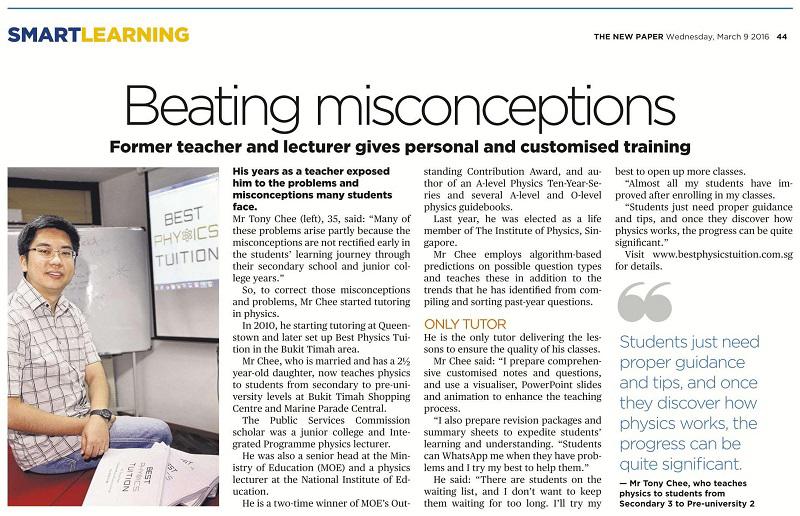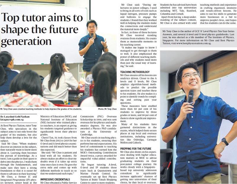Best Physics Tuition Centre focuses exclusively on Physics tuition for A Level, O Level and IP students. Founded by Mr Tony Chee, an ex-MOE school teacher with probably the most established credentials in Physics education. Best Physics Tuition offers unique programs which helped many students regained confidence in Physics and aced the national exams. Contact +65 8700 9189 to book a physics tuition session in Singapore.