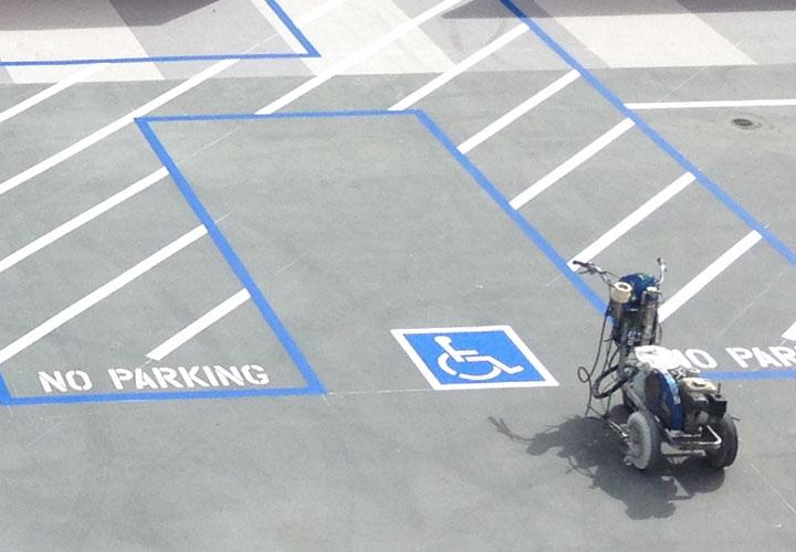 Additionally, our sport court and playground marking service caters to schools, parks, and recreational facilities by providing custom markings for basketball courts, tennis courts, playground games, and more. We also specialize in fire lane striping to keep emergency access zones visible and compliant with local fire codes. Crucially, our ADA compliant striping services ensure your parking facilities meet federal and state accessibility regulations, including properly marked handicap spaces and van-accessible areas.
