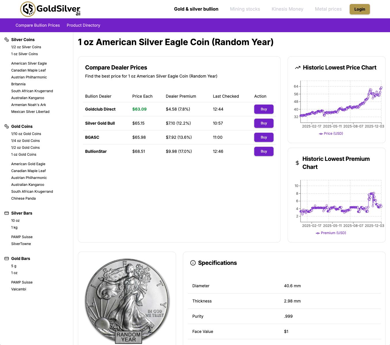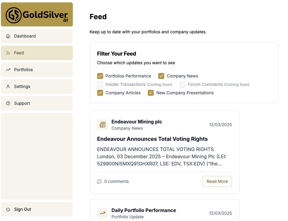 GoldSilver.ai is a user-friendly platform designed to help beginners navigate their first steps into the world of gold and silver. Whether you are buying your first silver coin or looking into mining stocks, the interface makes the process simple. The bullion price comparison tool ensures that new investors don't overpay by showing the best deals from major dealers. Users can also learn about the market by following live performance trends for various precious metals. The portfolio tracker is perfect for those starting to build a mix of physical and digital assets. Researching mining companies is made easy through clear metrics like production and reserves. This platform provides the intelligence and clarity needed for a confident start in metal investing.
