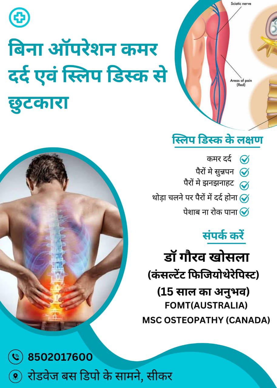 Welcome to a caring physiotherapy clinic dedicated to pain relief, mobility, and long-term wellness. We offer Osteopathy in Sikar with gentle hands-on care, along with Advanced Physiotherapy in Sikar for sports injuries, post-surgery rehab, and spine care. Our services include Chiropractic in Sikar to improve posture, Dry Needling in Sikar for muscle pain, and Cupping in Sikar to enhance circulation. If you are searching for Physiotherapy near me, meet an expert Physiotherapist in Sikar who listens and treats you with evidence-based plans, modern equvipment, and clear guidance for recovery at home. Book your visit today and move better every day. Friendly staff, clean rooms, flexible slots, and honest pricing make visit reassuring.