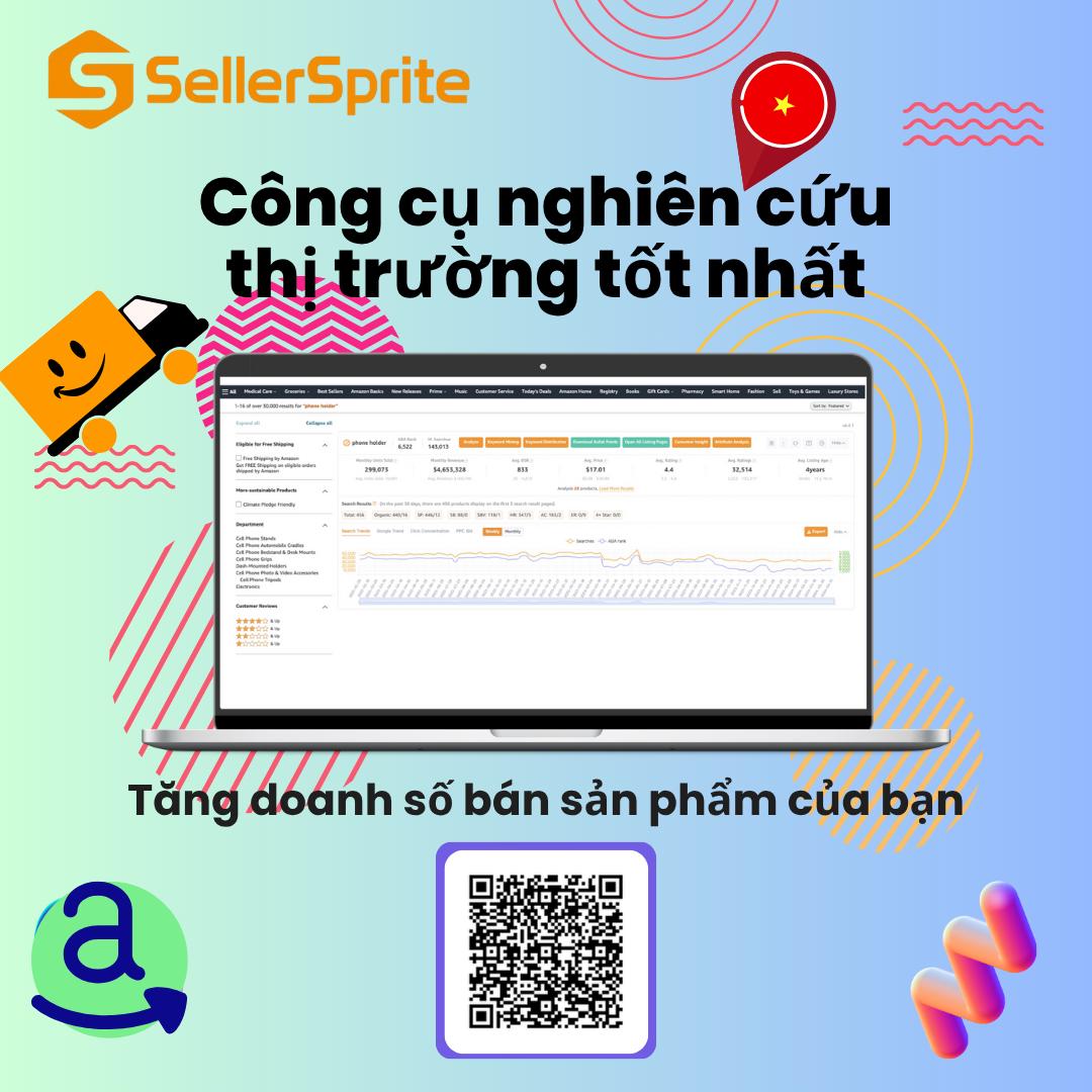 SellerSprite là công cụ nghiên cứu Amazon hàng đầu, cung cấp phân tích sản phẩm, từ khóa, đối thủ cạnh tranh và ước tính doanh số theo thời gian thực. Tiện ích mở rộng Chrome của chúng tôi được hơn 100.000 người bán Amazon tin dùng trên toàn cầu. Hỗ trợ người bán Việt Nam tìm kiếm sản phẩm tiềm năng, tối ưu hóa danh sách và phát triển kinh doanh hiệu quả trên Amazon.