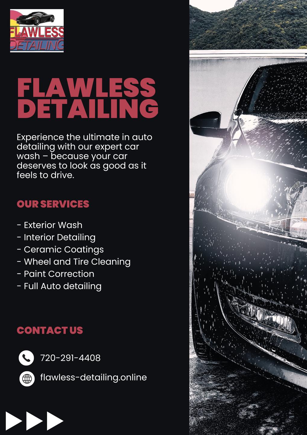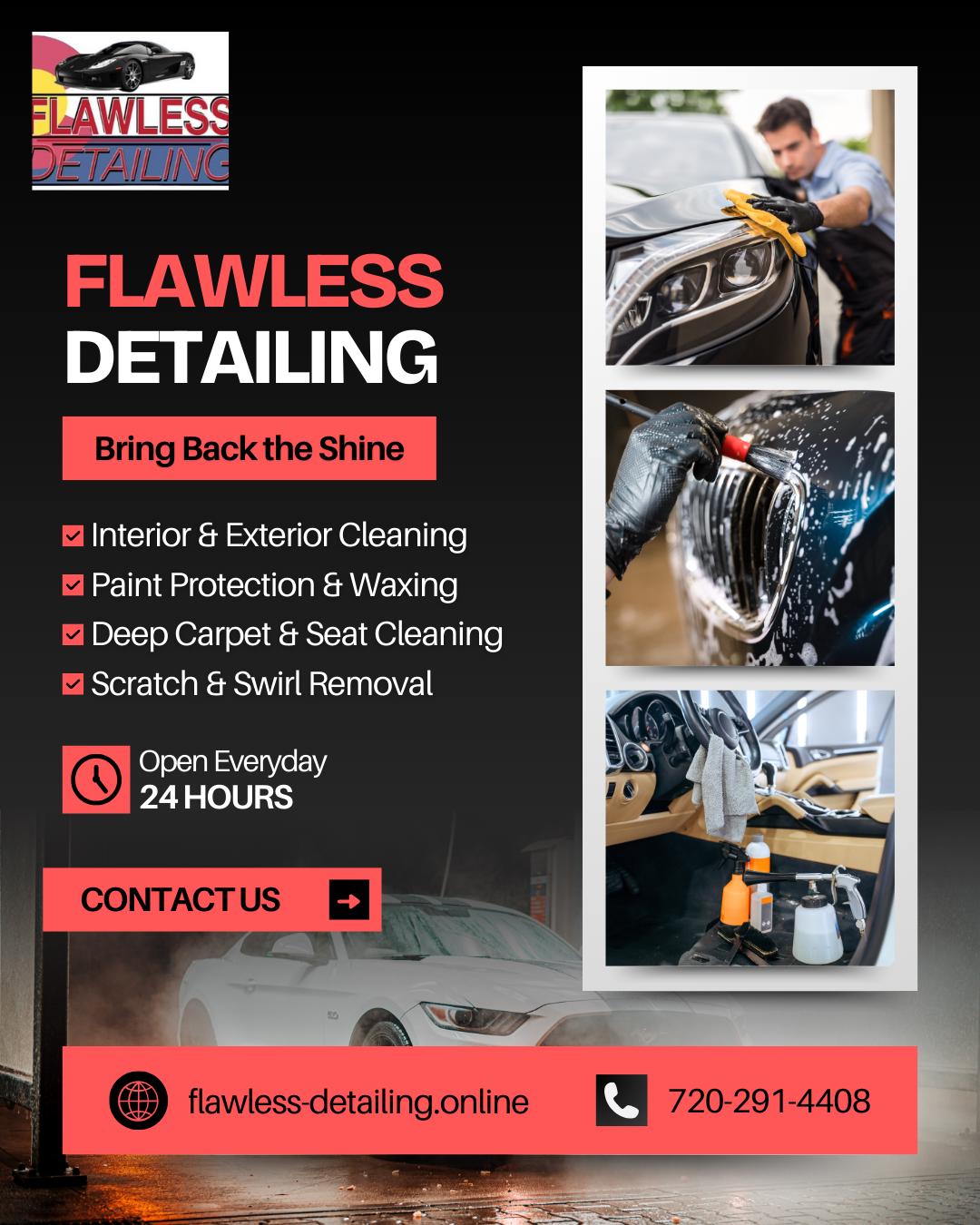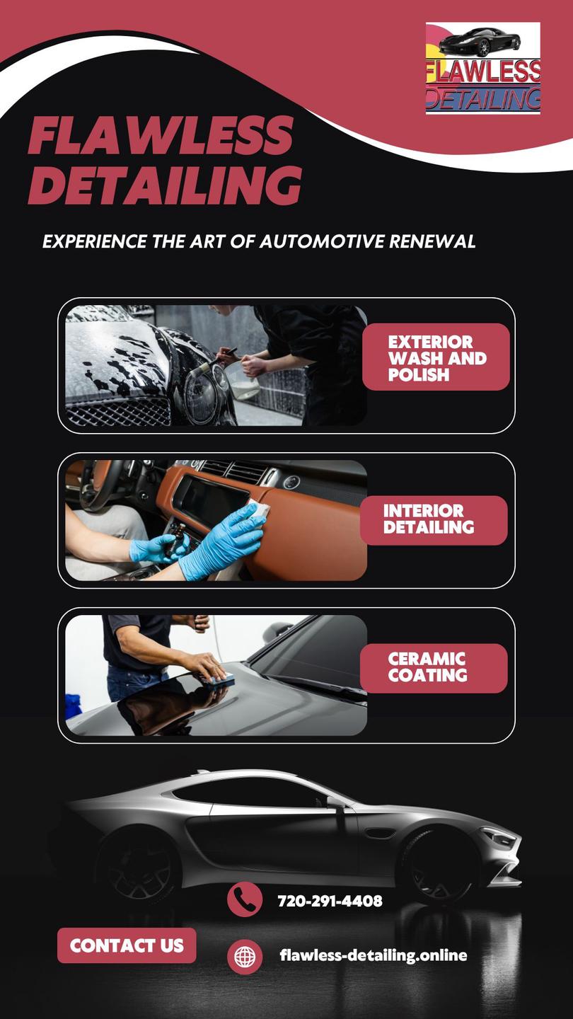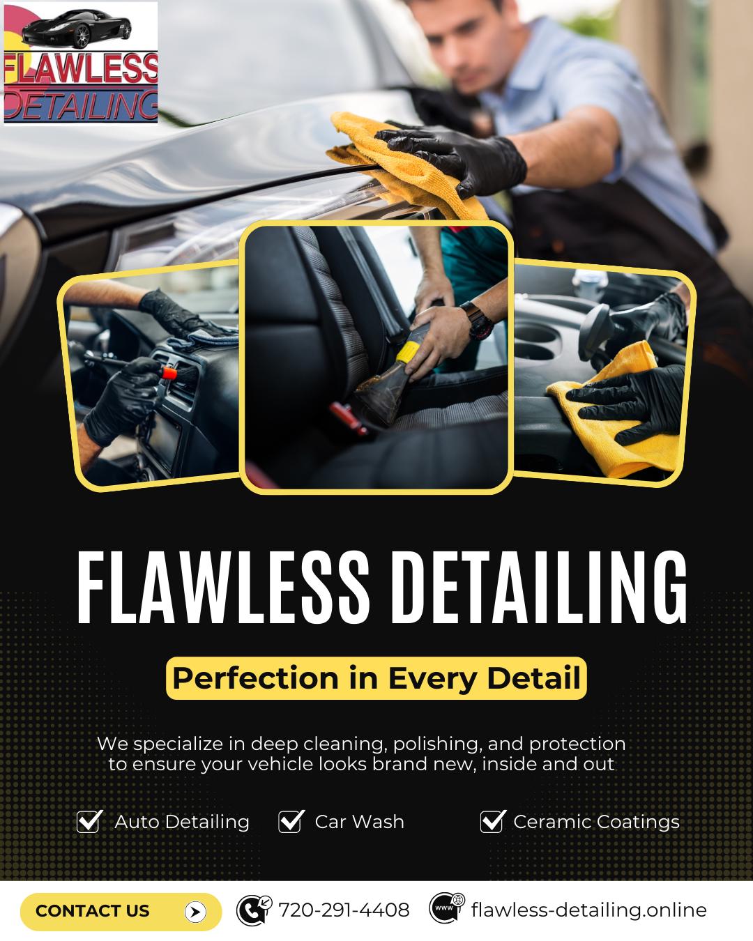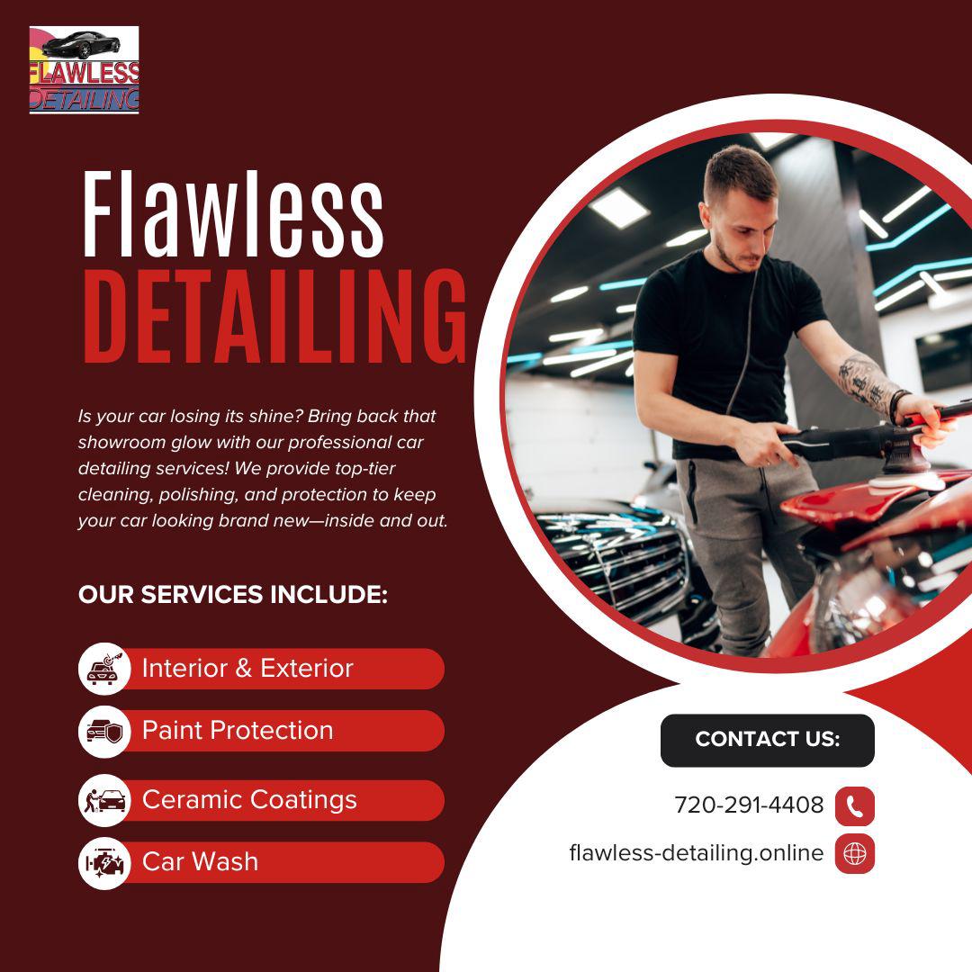 Flawless Detailing is a trusted car detailing service and ceramic coating provider in Thornton, Colorado, specializing in auto detailing, paint correction, nano-ceramic coating, and graphene coating. Since 2018, we’ve helped drivers restore and protect their vehicles using advanced techniques and high-quality products. From interior cleaning to exterior waxing, we keep your car looking its best.