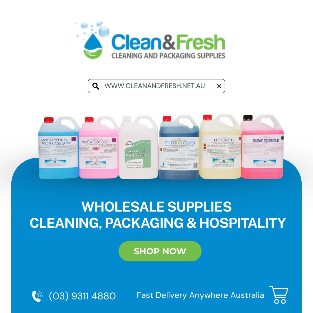 Clean and Fresh is a reliable wholesale supplier in Melbourne, specialising in cleaning supplies, packaging products, and hospitality essentials. With over 15 years of trusted experience, we have become a preferred choice for commercial, automotive, and household customers who value quality, consistency, and affordability.