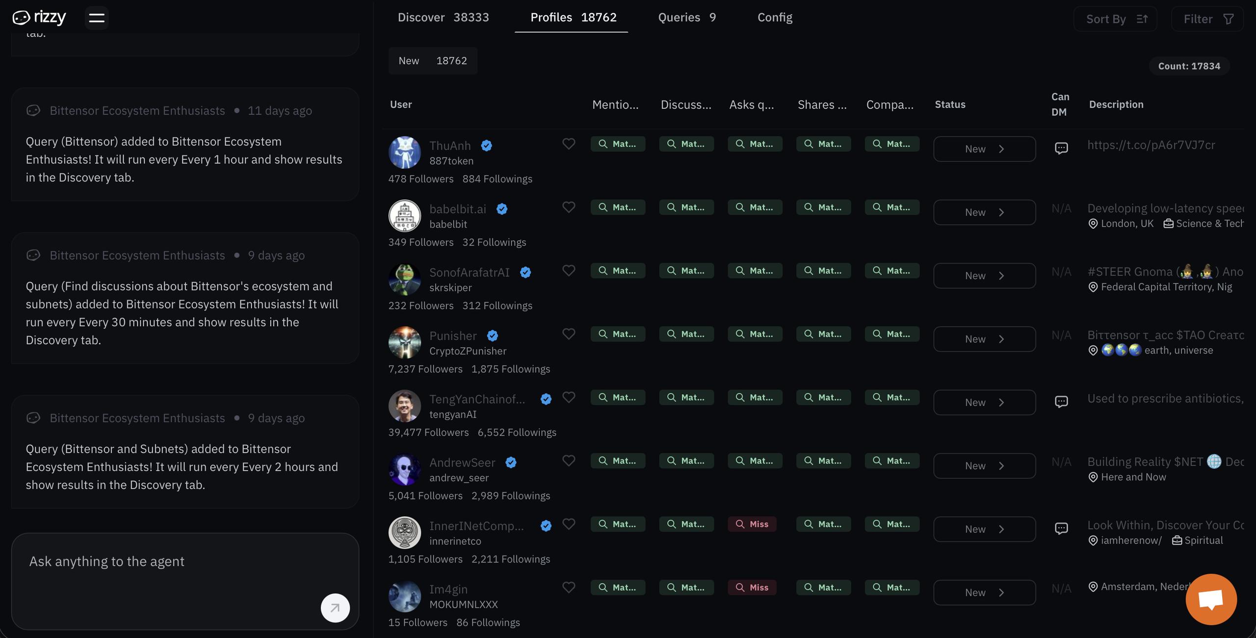 Rizzy Agent turns live online discussions into clear next steps. It listens across public platforms, understands what people are really asking for, and delivers qualified opportunities the moment they surface.