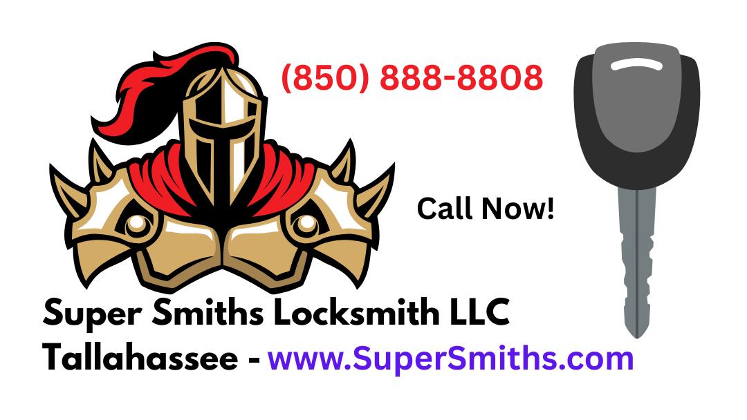 A local locksmith in Tallahassee. Super Smiths Locksmith, a locksmith service dedicated to helping Tallahassee with locksmith needs. Super Smiths Locksmith can try to match or beat any competitors price for car or residential locksmith services. Customer service is our company priority. Car Key Replacement in Tallahassee. Our car key replacement service in Tallahassee can replace nearly any smart key fob, car or truck key on the spot. If you've lost your car keys or they have been stolen or damaged, call Super Smiths Locksmith to replace vehicle keys. We can save you time and money. Every car key or fob we make comes with a 2 year warranty. You can call Super Smiths Locksmith today for residential and commercial locksmith services too.