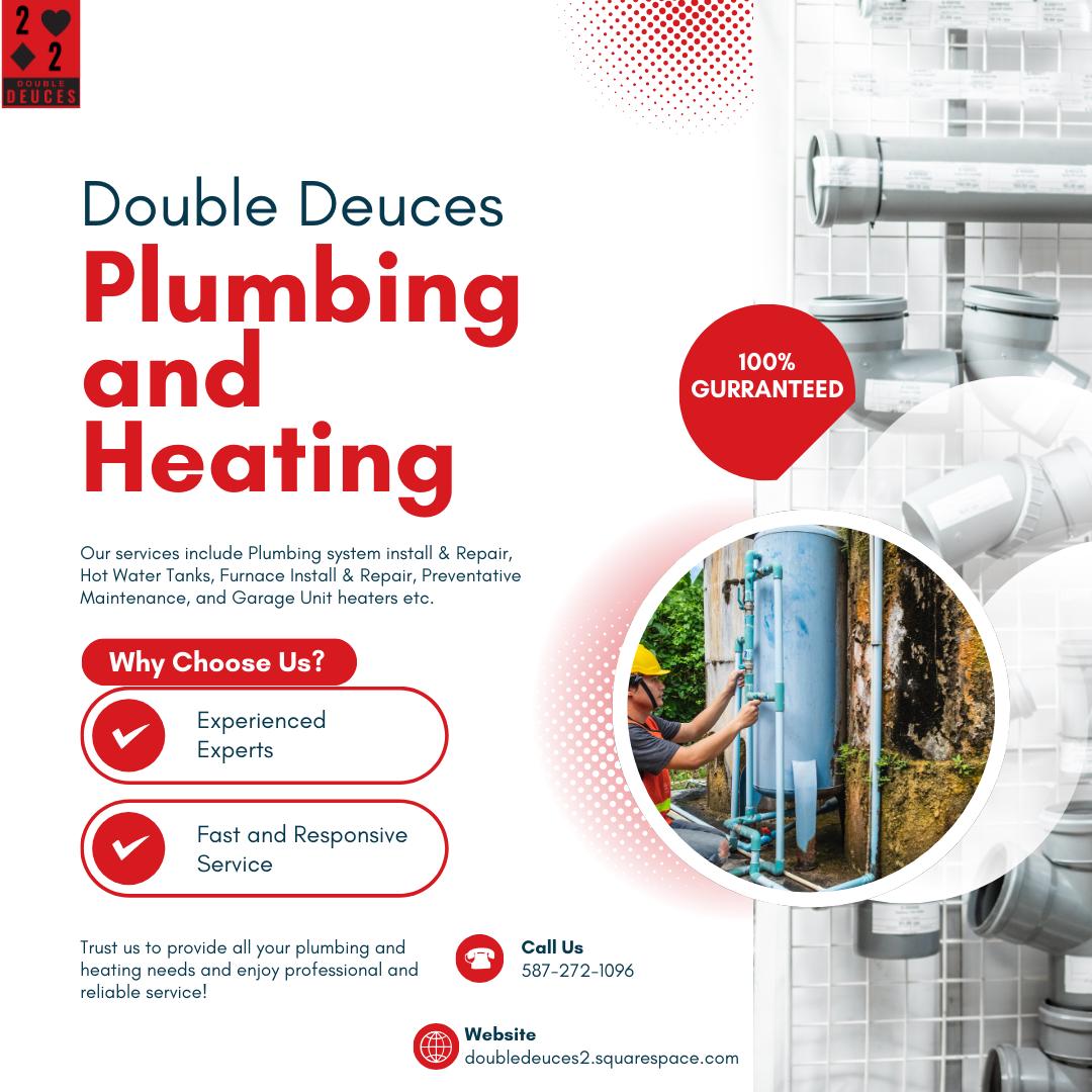 Double Deuces Plumbing and Heating Inc. proudly serves Red Deer with expert plumbing services and furnace repair and install. Our skilled plumbers handle hot water tank installations, emergency repairs, and preventative maintenance to keep systems running smoothly. We focus on fast response, fair pricing, and quality workmanship so homeowners can count on safe, comfortable, and energy-efficient living all year round.