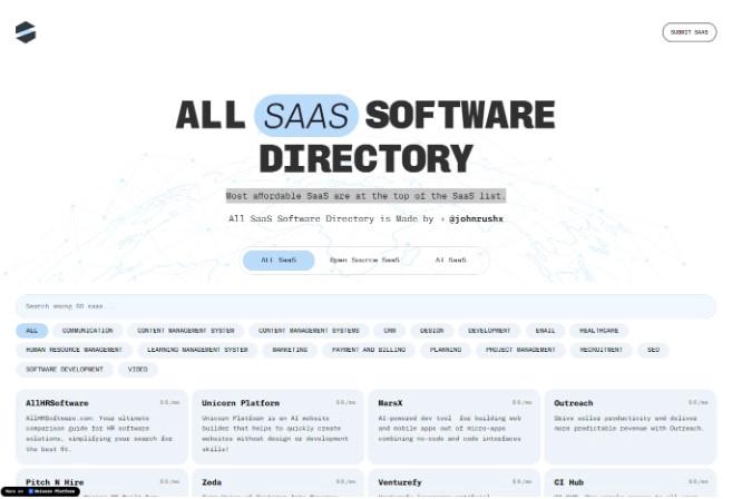 The SaaS Software Directory serves as an essential online platform that curates detailed information about a variety of SaaS offerings. It compares both open-source and commercial SaaS solutions, allowing users to evaluate which products align best with their needs. This directory is a critical resource for businesses aiming to optimize their workflow with cloud-based software. With its user-friendly interface and comprehensive breakdowns of each product, it enables users to make informed decisions on both pricing and features. If you're looking for value-driven software with extensive options, this platform is an indispensable tool.