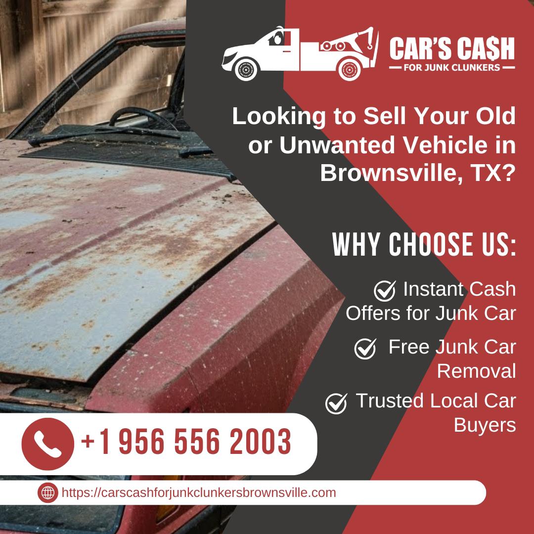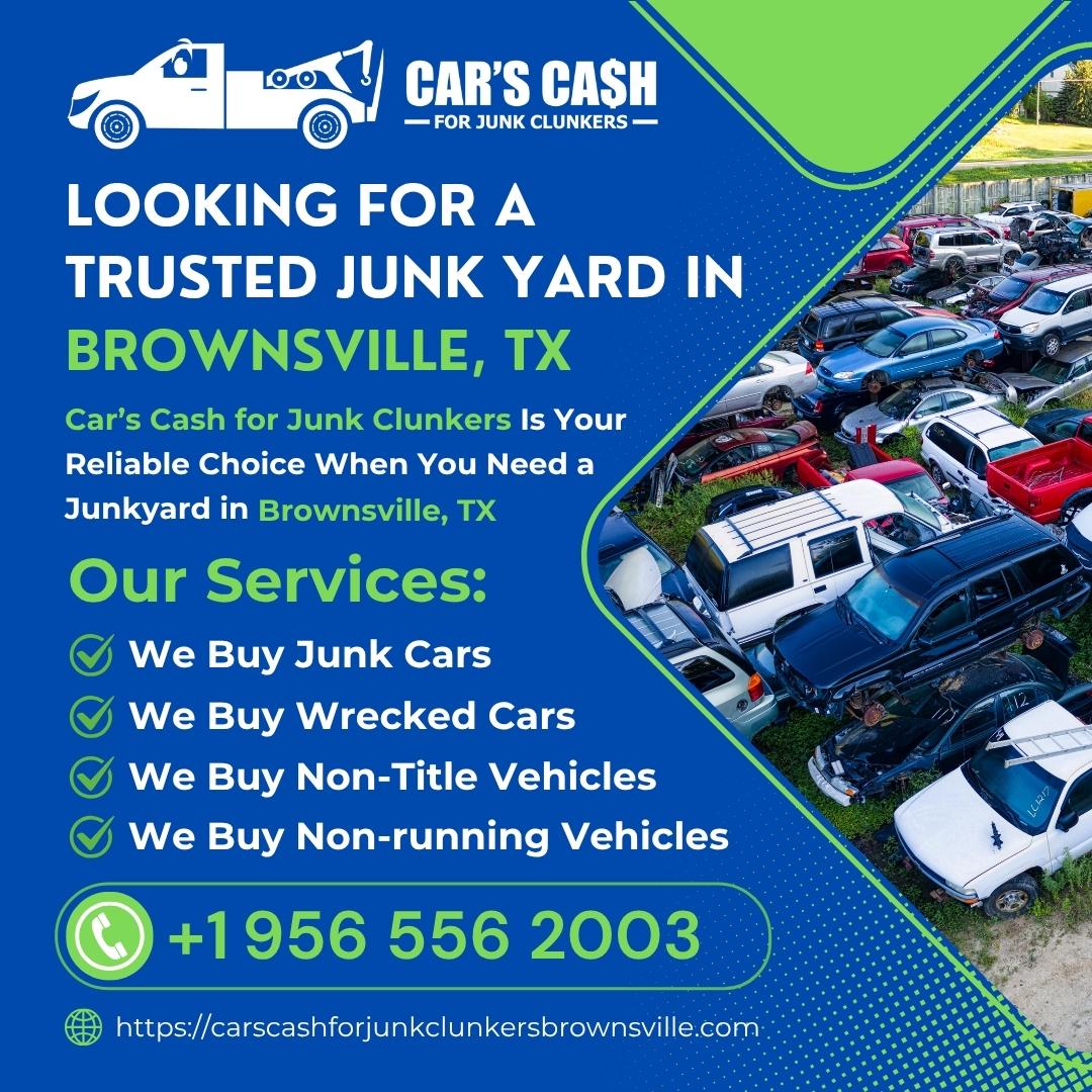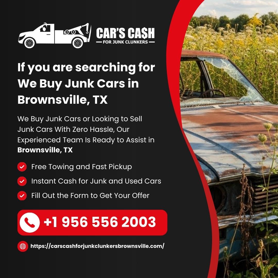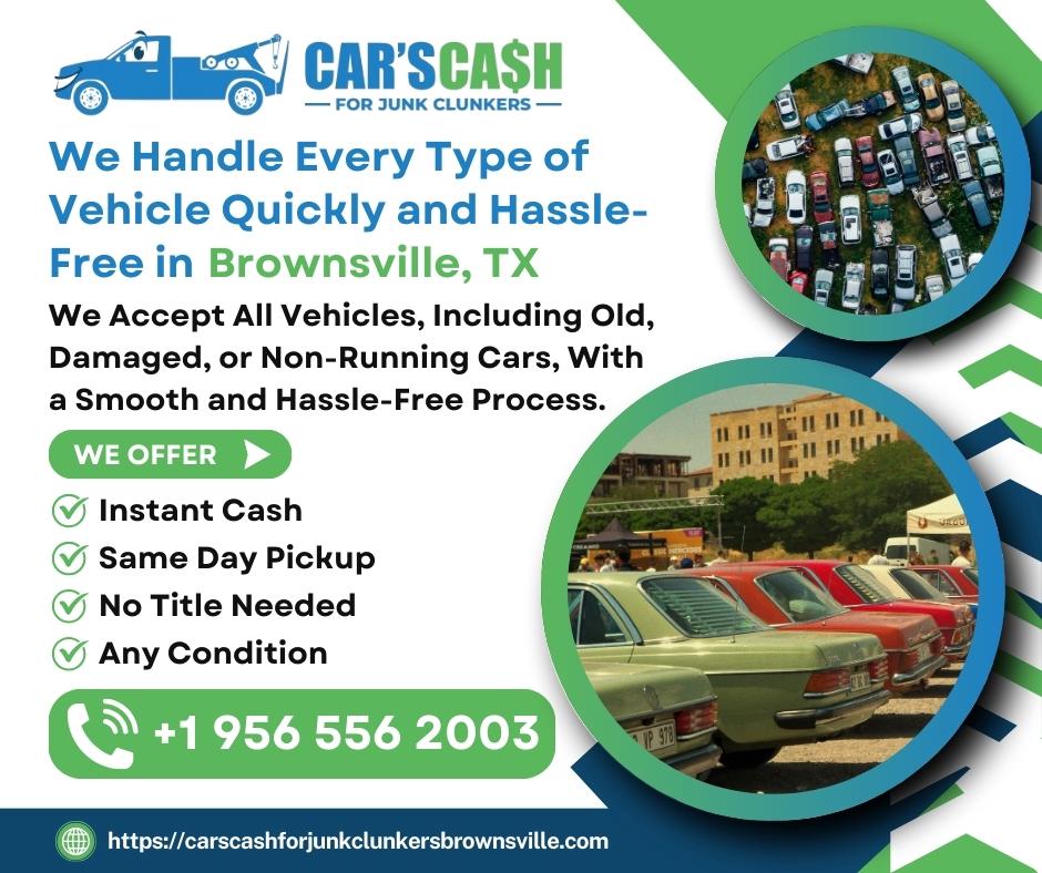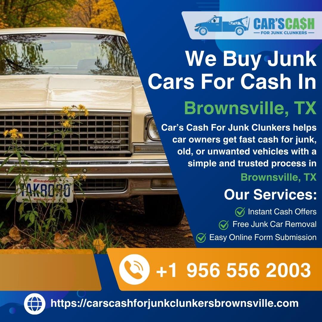 Cars Cash For Junk Clunkers is a trusted Junk Car Buyer in Brownsville, TX providing fast and hassle-free service. Located in Brownsville, TX, we specialize in Cash For Junk Brownsville, TX, Cash For Clunkers Brownsville, TX, and Cash For Cars Near Me Brownsville, TX. If you're looking to Sell My Car For Cash Brownsville, TX or need reliable Used Car Buyers Brownsville, TX, our team is ready to help. We proudly offer Junk Car Removal Brownsville, TX, helping customers Scrap My Car Brownsville, TX, Junk My Car Brownsville, TX, or Sell Junk Brownsville, TX quickly and easily. Whether your vehicle is old, damaged, wrecked, or not running, we provide top dollar offers and same-day pickup.