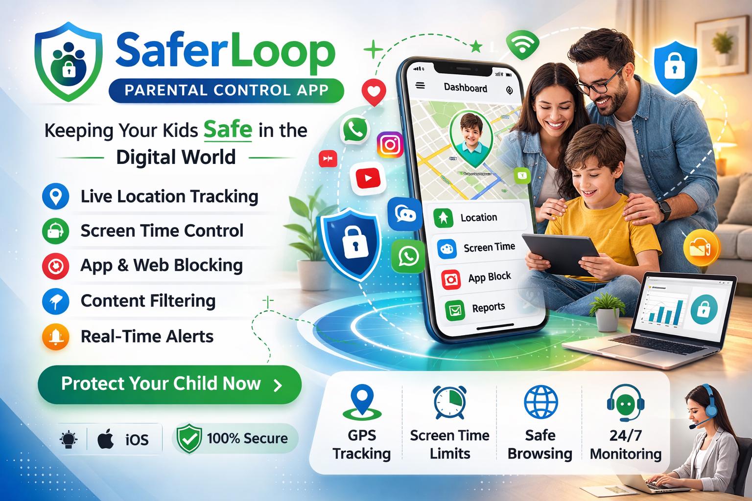 Saferloop is a company that thousands of families around the globe believe in keeping a closer look at their family and children in the virtual world. Our digital parenting is more relaxed as we provide an effective platform that feels more secure according to the age and the maturity level of your child. You need the freedom and the encouragement to go through the digital age with your inquisitive toddler or your social teenager, so Saferloop is the way to go.