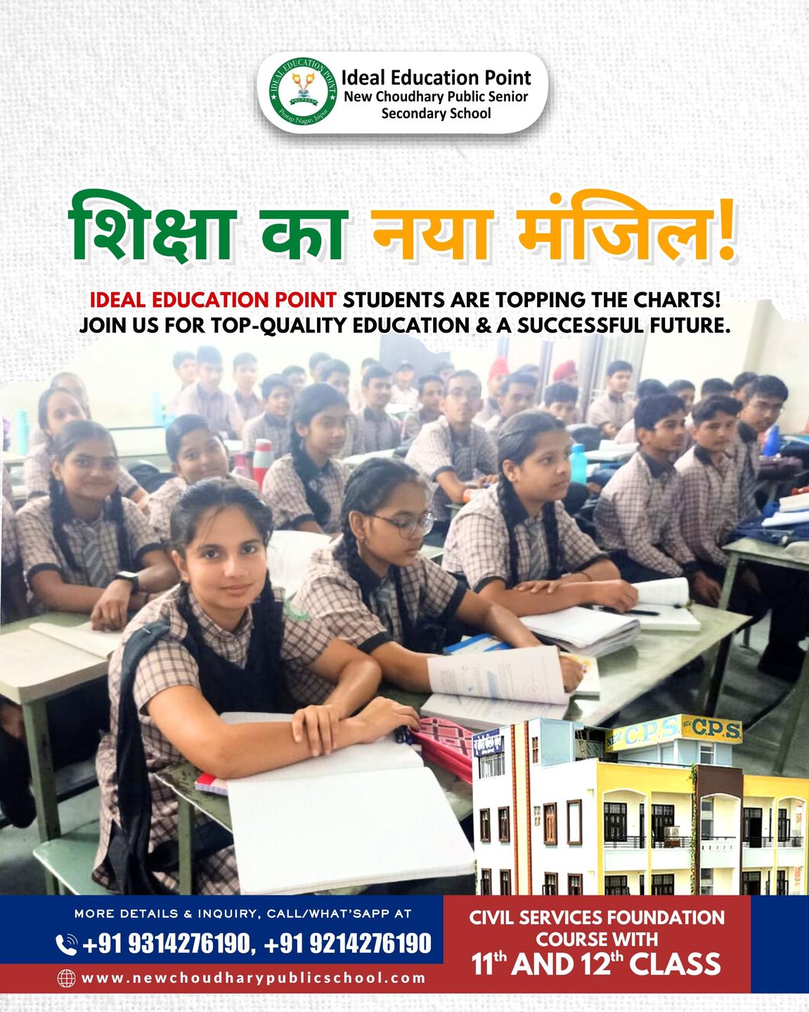 Ideal Education Point (New Choudhary Public Senior Secondary School) is one of the best RBSE Hindi & English medium School in Jaipur where students get a fresh & digital environment for their studies.