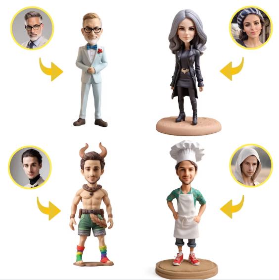 I Storbritannien, där personlig prägel värderas högt, sticker våra AI-designade bobbleheads ut som ett unikt presentalternativ. Du kan beskriva temat du vill ha, ladda upp ditt foto och generera en verklighetstrogen bobblehead som speglar din personlighet. Oavsett om du letar efter en minnesvärd bröllopsgåva, en rolig födelsedagsöverraskning eller en speciell minnessak för att fira livets milstolpar, är vårt breda utbud av alternativ utformat för att väcka känslor och fungera som varaktiga påminnelser om värdefulla ögonblick.