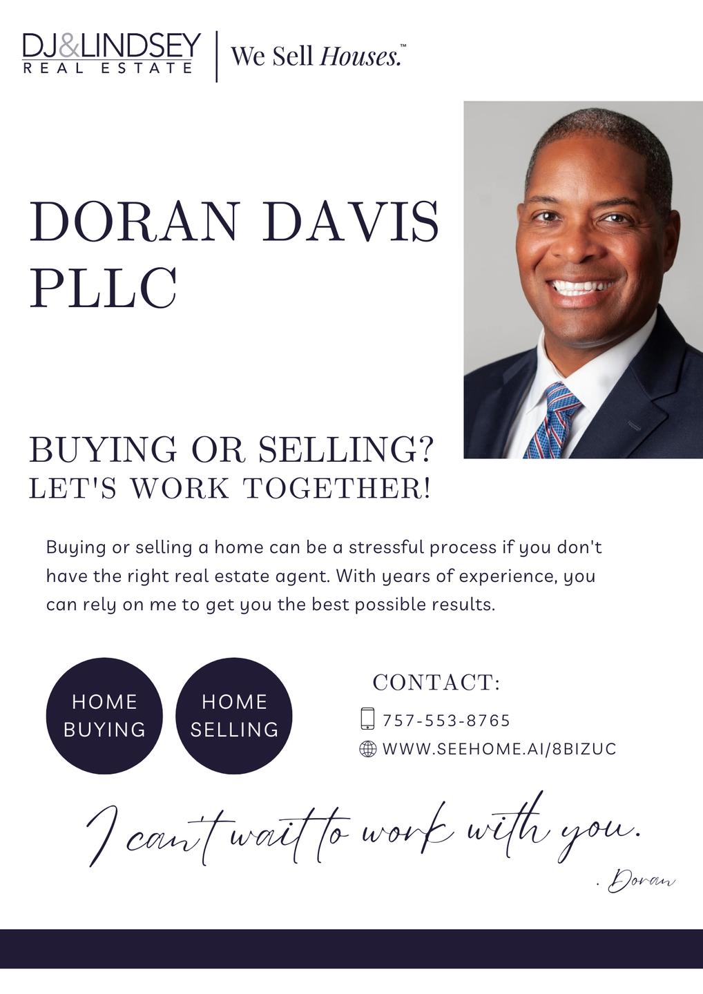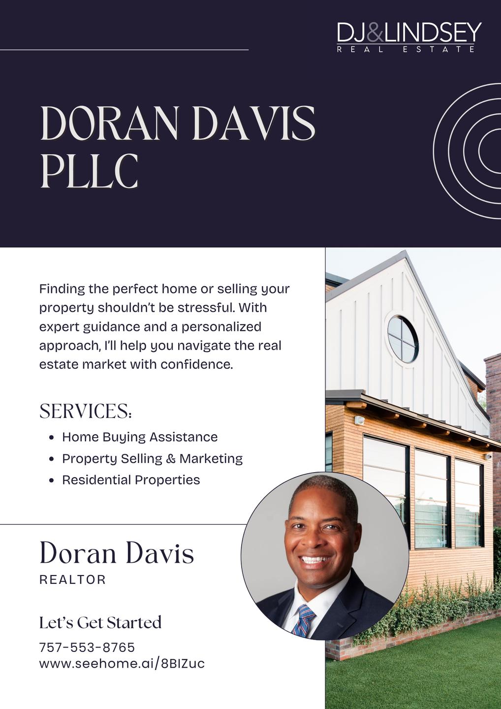 As Doran Davis PLLC, I provide professional real estate services in Palm Coast, specializing in home buying, home selling, and residential property transactions. As an experienced real estate agent, I work with trusted real estate brokers and operate as a full-service real estate agency dedicated to delivering seamless experiences for my clients. I guide buyers and sellers through every step with honesty, clear communication, and expert market insight. Whether you are looking to buy your dream home or sell your current one, I ensure smooth and successful results.