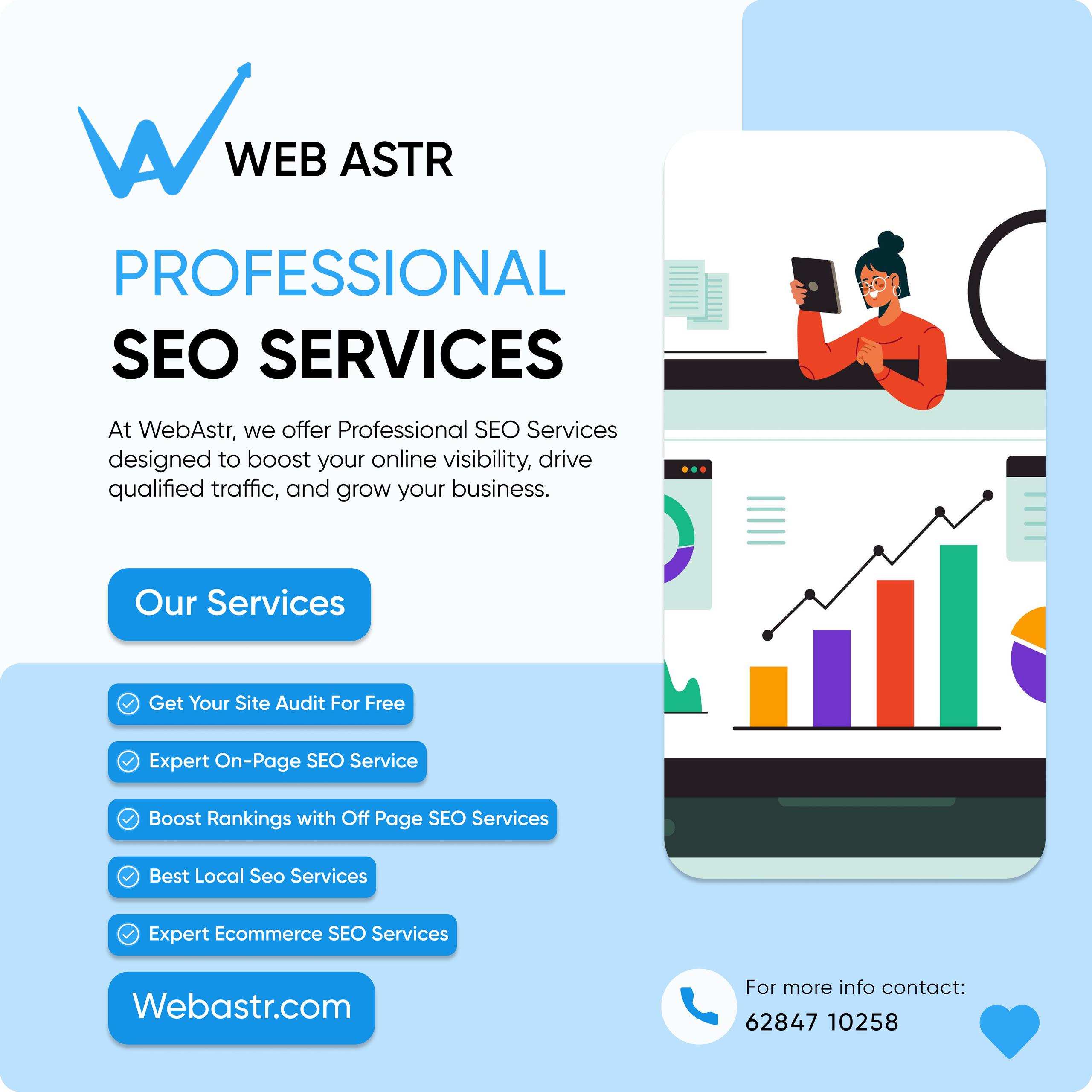 Web Astr is a digital marketing agency dedicated to helping businesses build a strong online presence. Specializing in SEO, website development, and branding, the agency provides tailored strategies that combine technical expertise with creative solutions. With a focus on transparency, performance, and measurable results, Web Astr empowers brands to increase visibility, attract qualified leads, and achieve sustainable growth in the digital landscape. From search engine optimization and responsive web design to data-driven marketing campaigns, Web Astr delivers end-to-end solutions designed to meet unique client goals.