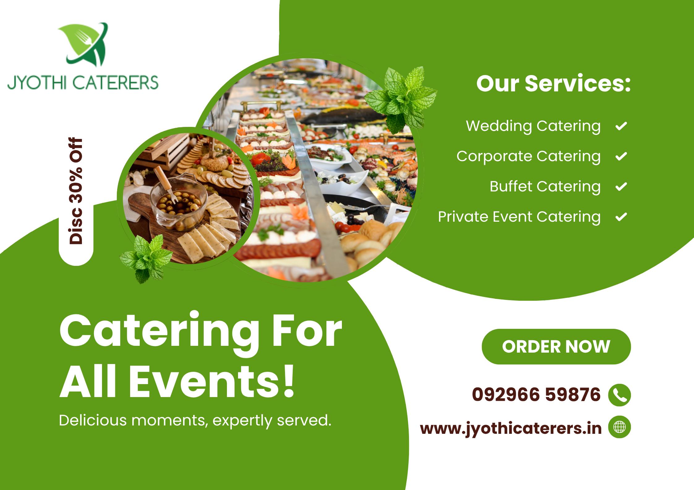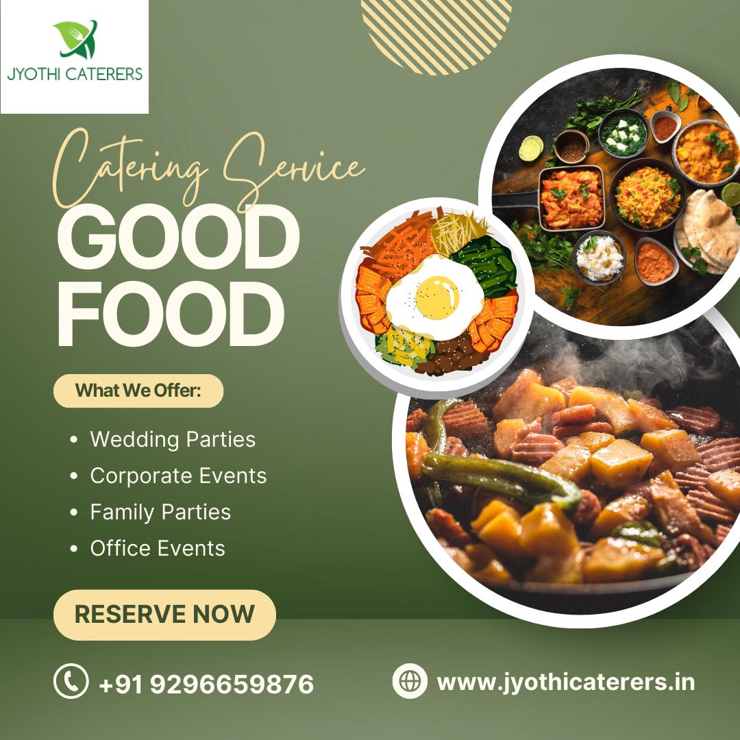Jyothi Caterers We Jyothi Caterers as we grow, we never forget where we came from and what we are trying to achieve. Our loyal customers are big part of our success that helped us at every step of our journey by providing us continuous feedback. We will do whatever our customer demands to improve our services. We have remained true to our roots of promising to serve best quality food with the good taste. We have a Passion to succeed and earn respect in the industry made us to deliver excellent service and great taste. We do not believe in making false claims instead we offer honest advise, excellent taste and best prices. It has been our policy to treat every client with utmost integrity and the highest degree of professionalism. This is why Jyothi Catering today is considered a trusted name in the industry