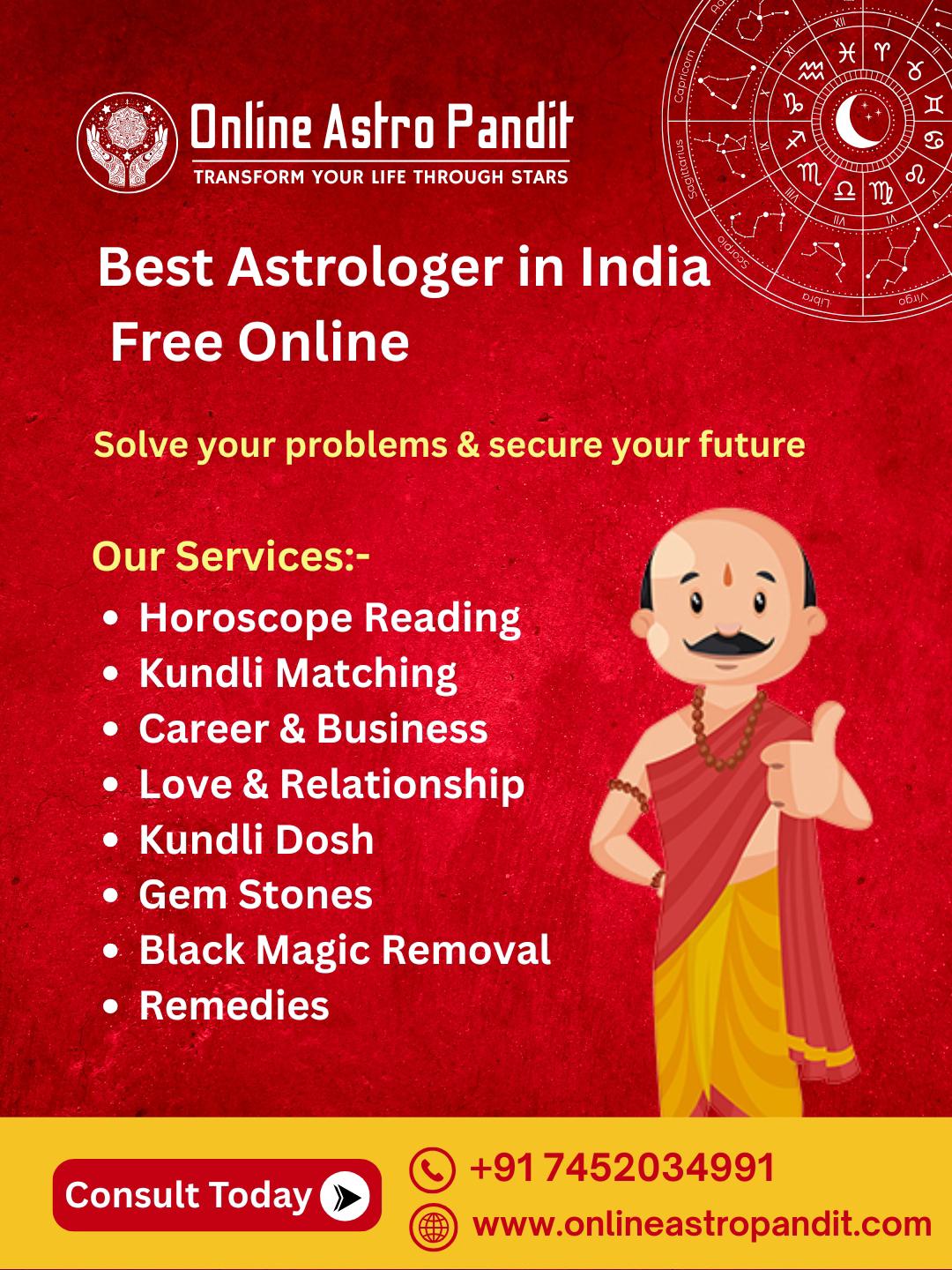 OnlineAstroPandit is a trusted astrology service — ranked among the top 10 astrologer in India 2026 — dedicated to guiding seekers across India with accurate and insightful readings. We offer free online horoscope consultations, birth chart analyses, gemstone and remedy suggestions, and personalized life guidance tailored to each user’s needs. Our team consists of experienced, certified astrologers who deeply understand Vedic astrology, Kundli matching, and predictive techniques. We deliver Best astrologer in India free online services with clarity, honesty, and empathy to help individuals navigate life’s challenges. Choose OnlineAstroPandit because we combine traditional wisdom with modern convenience — making reliable astrology accessible to everyone, anywhere. For those seeking trusted guidance, OnlineAstroPandit stands out as the best astrologer in India 2026.