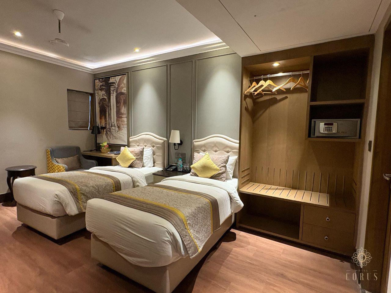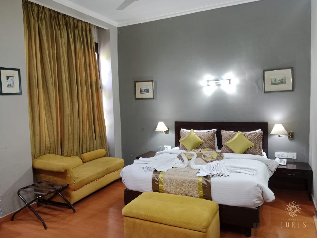 The Hotel Corus is a modern 3-star hotel in Connaught Place, New Delhi, offering a prime location for both business and leisure travelers. Just steps from Rajiv Chowk Metro Station and minutes from iconic landmarks like India Gate and the Red Fort, our hotel provides the perfect base to explore the city. Our comfortable rooms are equipped with Wi-Fi, cable TV, safes, and tea/coffee makers. Guests can enjoy 24/7 room service, a cozy café-bar with terrace seating, and a daily breakfast option. Whether you're visiting for work or a short getaway, The Hotel Corus ensures a budget-friendly stay with warm hospitality and an unbeatable central location.