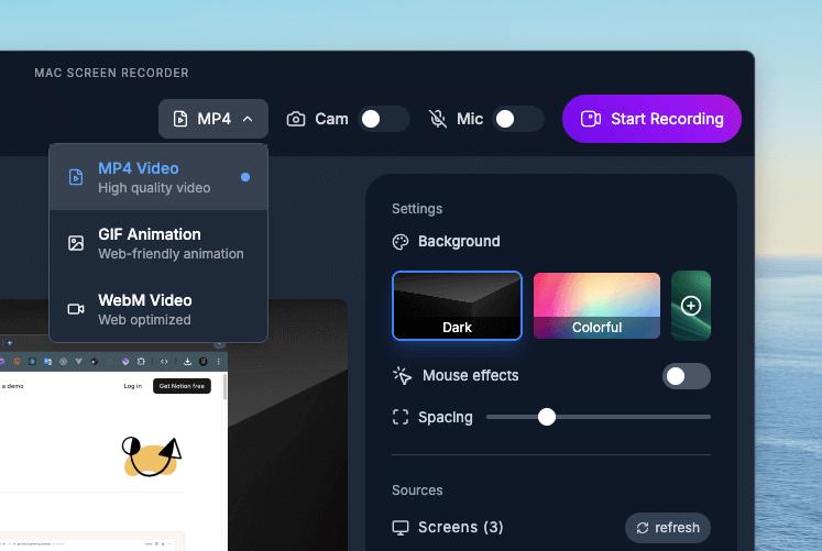 Just open the app, select your screen or window, and hit record. That’s it. No bloated settings, no accounts, and no friction.