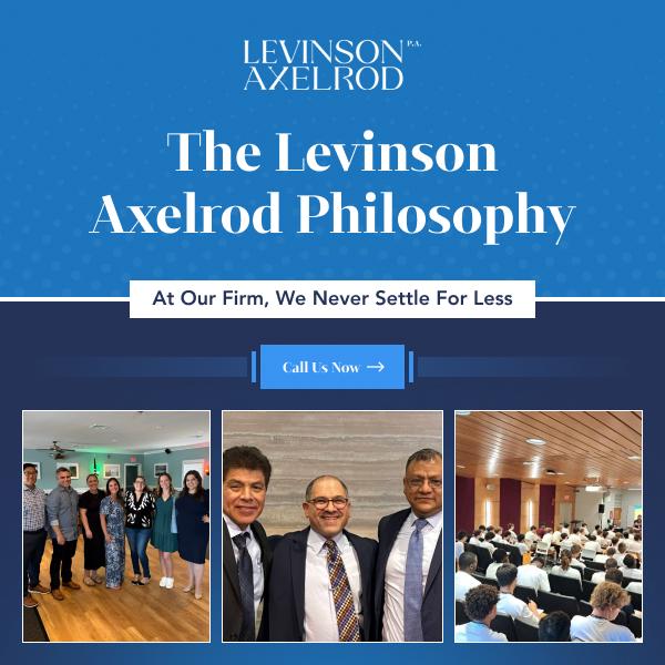 Levinson Axelrod, P.A. is a trusted New Jersey personal injury attorney firm, dedicated to representing injured victims across the state. With a focus on serious injuries, wrongful death, and accidents involving motor vehicles, trucks, and construction sites, our team provides comprehensive legal support. As a Tier 1-ranked firm by U.S. News “Best Law Firms,” we have recovered over $1 billion for our clients, including $350 million in the last five years alone. Our commitment goes beyond winning cases; we deeply care about each client's well-being. If you're seeking a New Jersey car accident lawyer, construction site accident lawyer, or a New Jersey truck accident lawyer, Levinson Axelrod is here to help you secure the justice and compensation you deserve.