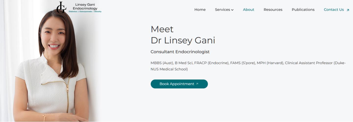 Dr Gani specialises in managing diabetes, bone disorders, and chronic diseases with a personalised and evidence-based approach. She practices at Linsey Gani Endocrinology, part of the Soon Diabetes Thyroid and Endocrinology Clinic.