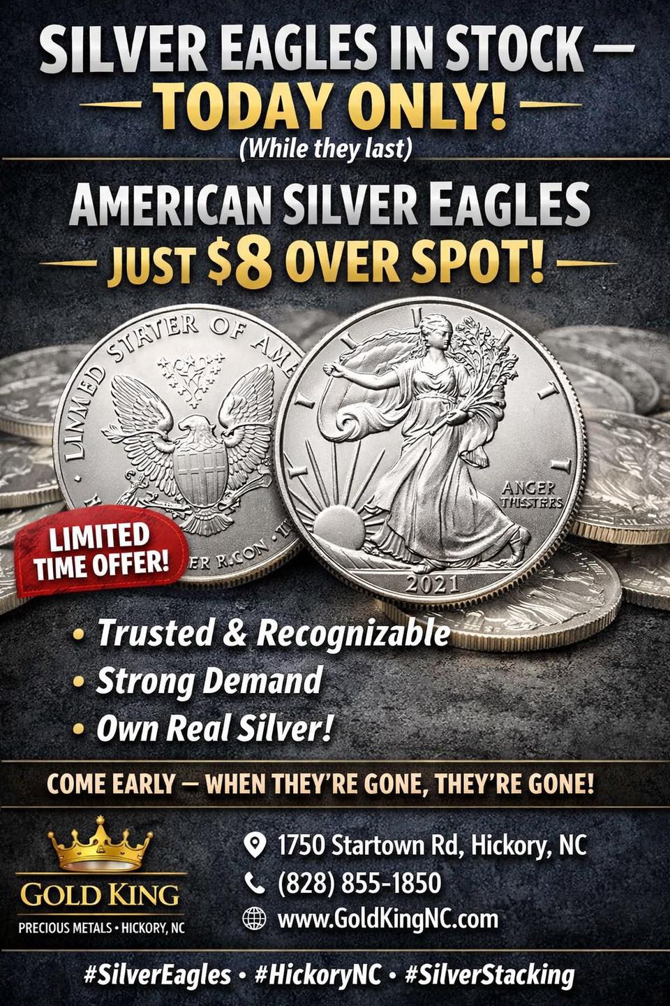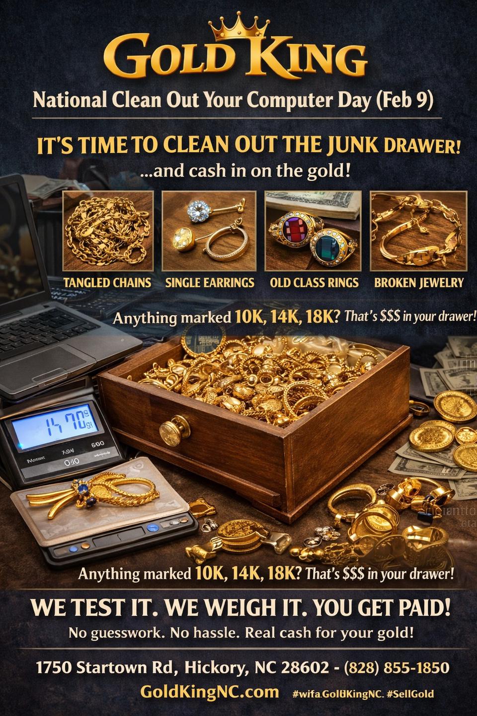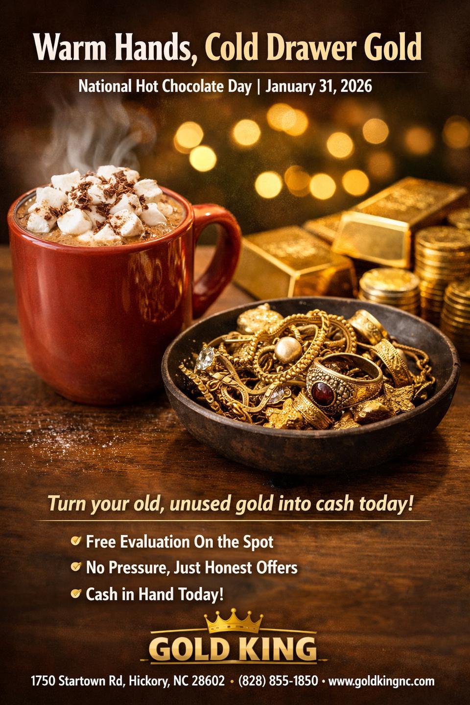 Gold King is the trusted destination for cash for gold in Hickory, NC, offering top payouts for gold jewelry, gold coins, silver coins, silver jewelry, diamonds, and more. As a respected jewelry buyer and gold dealer, we provide cash for jewelry, cash for silver, and fair evaluations from experienced silver buyer and silver dealer professionals.In addition, Gold King is a leading watch buyer, Rolex buyer, and luxury watches watch dealer, paying competitive rates for fine timepieces. With decades of experience and a reputation for higher payouts, customers return again and again. We proudly serve Hickory, Long View, Mountain View, Conover, Newton, St Stephens, Northlakes, and beyond. Walk in, get paid, and experience honest value today!
