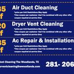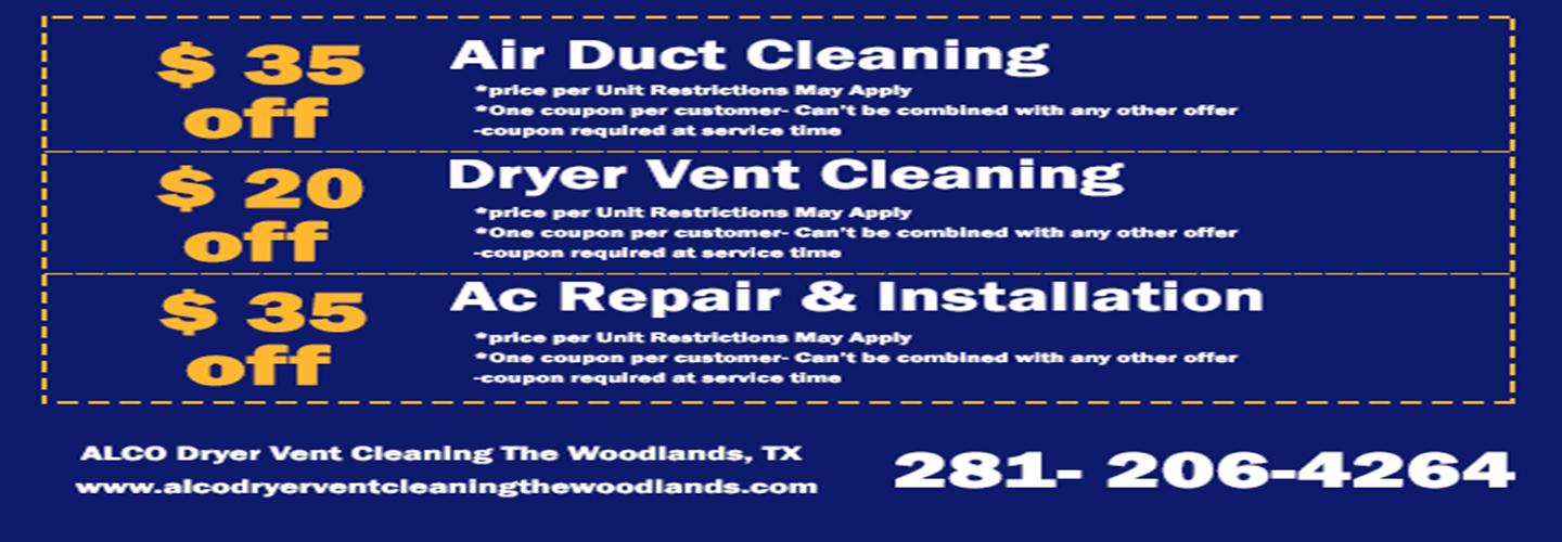 ALCO Dryer Vent Cleaning The Woodlands TX, is under your service anytime when the problem is related to your clogged dryer vent at cheap prices and a free estimate.