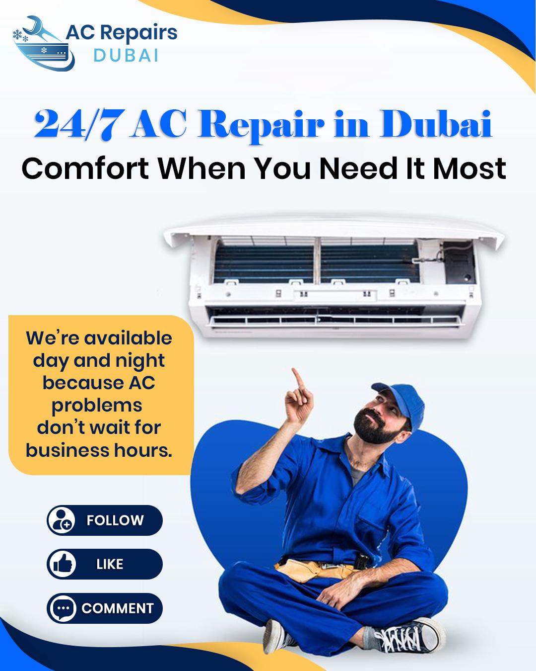 At AC Repair Dubai, we specialize in providing top-quality air conditioning repair, maintenance, and installation services across Dubai. With a team of skilled technicians, we ensure fast, reliable, and affordable cooling solutions for homes and businesses. Whether it's emergency repairs or routine servicing, we guarantee efficient and professional service to keep your AC running smoothly. Stay comfortable all year round with expert AC repair in Dubai!