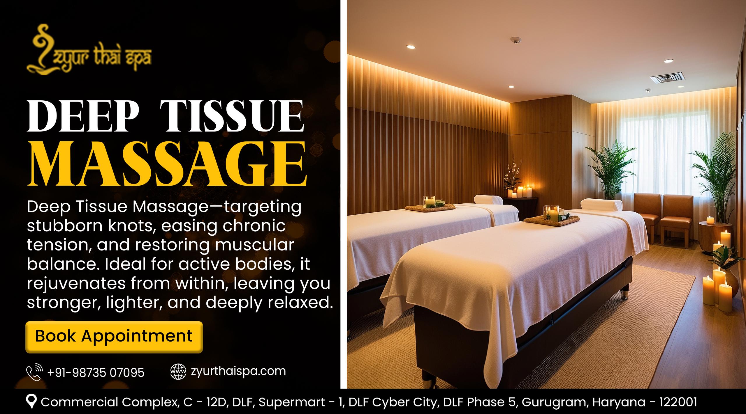 Zyur Thai Spa is your ultimate destination for relaxation and renewal, offering an authentic wellness experience in a serene and elegant setting. Recognized as a luxury spa in gurgaon, we combine traditional Thai therapies with modern techniques to restore balance to your body and mind. Our expertly trained therapists, calming ambience, and personalized treatments make Zyur Thai Spa a trusted Massage Spa for those seeking stress relief, deep relaxation, and holistic well-being. Step into a world of tranquility where luxury meets healing.