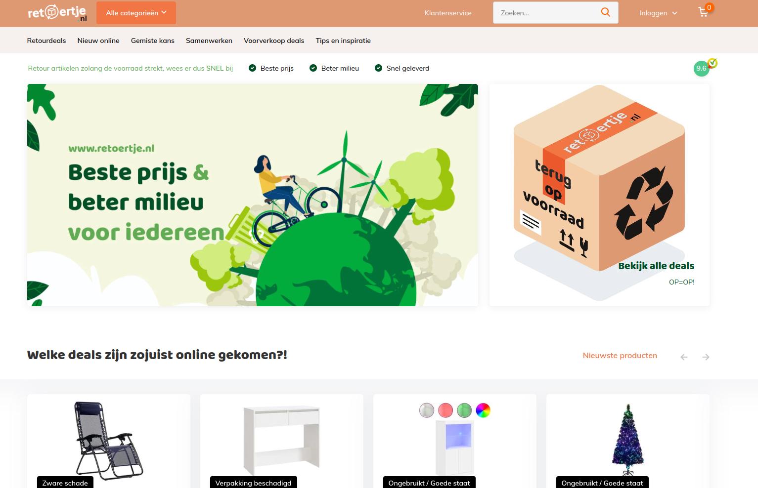 Retoertje.nl is dé online marktplaats voor retourproducten, restpartijen en overstock. Bij ons shop je bewust én betaalbaar, zonder dat het ten koste gaat van het milieu.