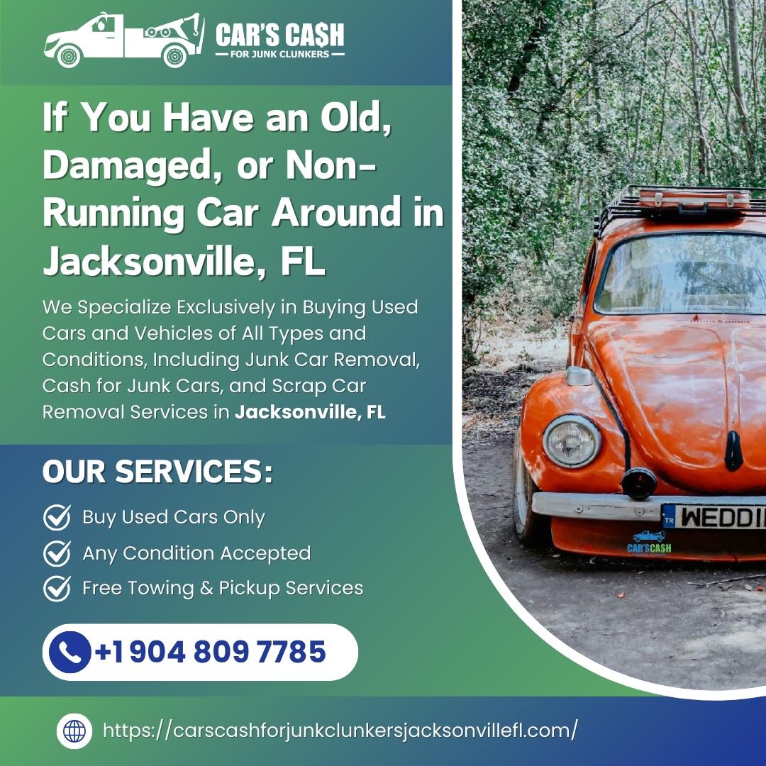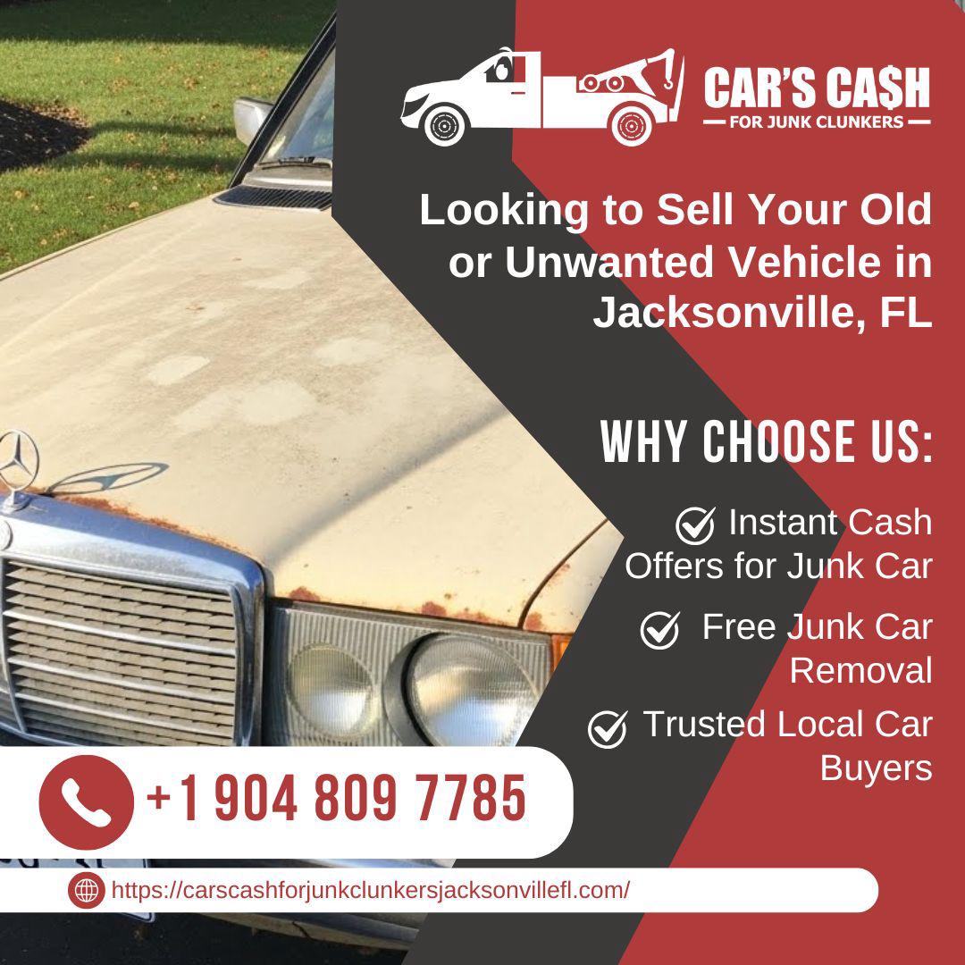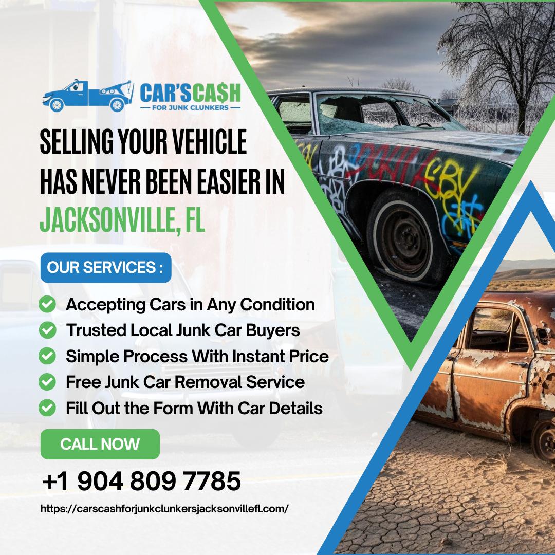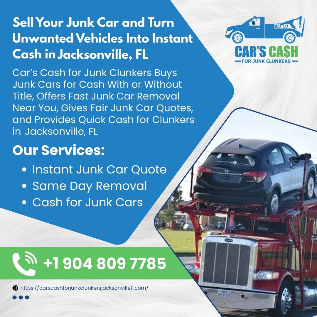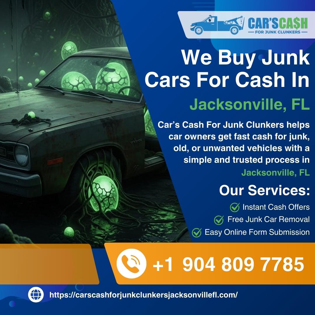 Cars Cash For Junk Clunkers is a trusted local junk car buyer serving Jacksonville and surrounding areas. Located in Jacksonville, FL, we provide fast and hassle-free Cash For Jacksonville, FL vehicles of all makes and conditions. Whether you want to Sell Junk Jacksonville, FL, Junk My Car Jacksonville, FL, or need reliable Junk Car Removal Jacksonville, FL, our team is ready to help. We proudly offer top dollar for unwanted, damaged, wrecked, scrap, and non-running vehicles. As professional Used Car Buyers Jacksonville, FL, we make it easy to Sell My Car For Cash Jacksonville, FL with same-day pickup and instant payment. Looking to Scrap My Car Jacksonville, FL or find Cash For Junk Cars Near Me Jacksonville, FL? We are your trusted local Clunker Junker Jacksonville, FL specialists.Call (904) 809-7785 today for fast quotes and dependable Cash For Clunkers Jacksonville, FL services. We make selling your car simple, quick, and profitable.