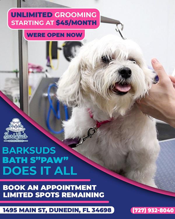 Welcome to BarkSuds Dunedin, your local destination for Affordable Dog Grooming in Dunedin! We’re proud to be your trusted partner in keeping your furry friends clean, healthy, and happy. Our Dunedin salon offers a calm, safe, and spotless environment where every pup enjoys gentle, professional care. From soothing baths and stylish haircuts to ear cleaning, nail trimming, and teeth brushing, our experienced groomers tailor every service to your pet’s unique needs. We believe regular grooming should be both quality and affordable — that’s why we offer our popular $45/month unlimited grooming membership. Visit us at 1495 Main St, Dunedin, FL, and treat your pet to the loving care, comfort, and pampering they deserve. Discover why BarkSuds Dunedin is the community’s favorite choice for gentle, expert grooming!
