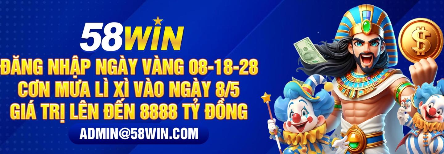 58WIN là một trong những nhà cái trực tuyến hàng đầu tại Việt Nam, nổi bật với kho trò chơi đa dạng như cá cược thể thao, game bài đổi thưởng, bắn cá và nổ hũ. Với giao diện hiện đại, hệ thống bảo mật cao và dịch vụ hỗ trợ khách hàng 24/7, cam kết mang đến trải nghiệm giải trí đỉnh cao cho người chơi. Đặc biệt, nhà cái thường xuyên triển khai các chương trình khuyến mãi hấp dẫn, như tặng 88K cho người chơi mới và nạp tặng 100%, giúp người chơi có thêm cơ hội trải nghiệm và chiến thắng.
