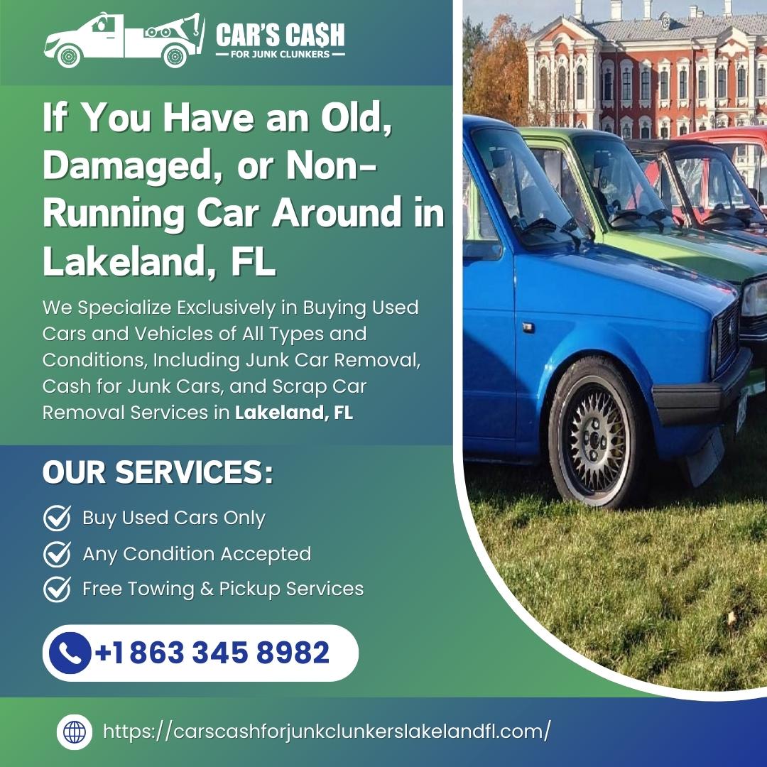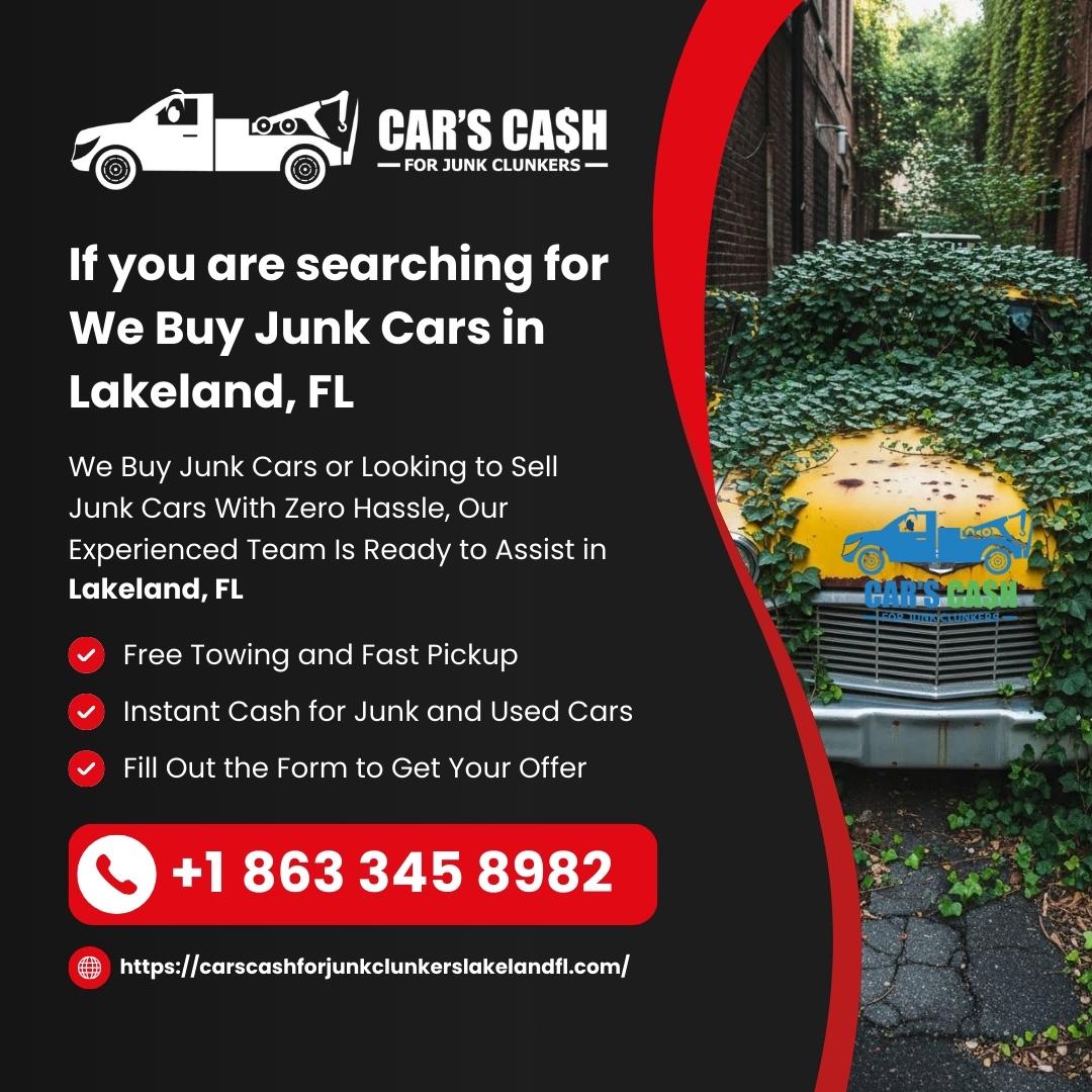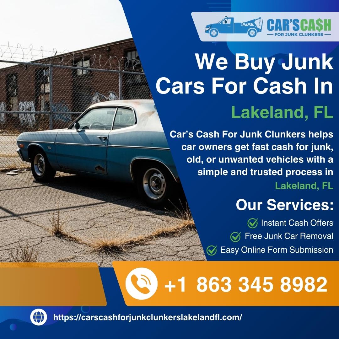 Cars Cash For Junk Clunkers is a trusted and professional junk car buying company in Lakeland, FL, offering fast and reliable cash for vehicles of all types and conditions. We specialize in Cash For Cars Lakeland FL, We Buy Junk Cars Lakeland FL, and Sell Junk Cars Lakeland FL services. Whether your vehicle is old, damaged, wrecked, non-running, or unwanted, we provide top dollar with same-day service. As experienced Used Car Buyers Lakeland FL, we make it easy to Sell My Car For Cash Lakeland FL without any hassle. We also offer Junk Car Removal Lakeland FL and handle all paperwork professionally. From Scrap My Car Lakeland FL to Cash For Clunkers Lakeland FL, our team ensures a smooth and transparent process. Looking for Cash For Junk Cars Near Me Lakeland FL or a reliable Junk Car Buyer Lakeland FL? Call us today at (863) 345-8982 for instant quotes and free pickup anywhere in Lakeland, FL.