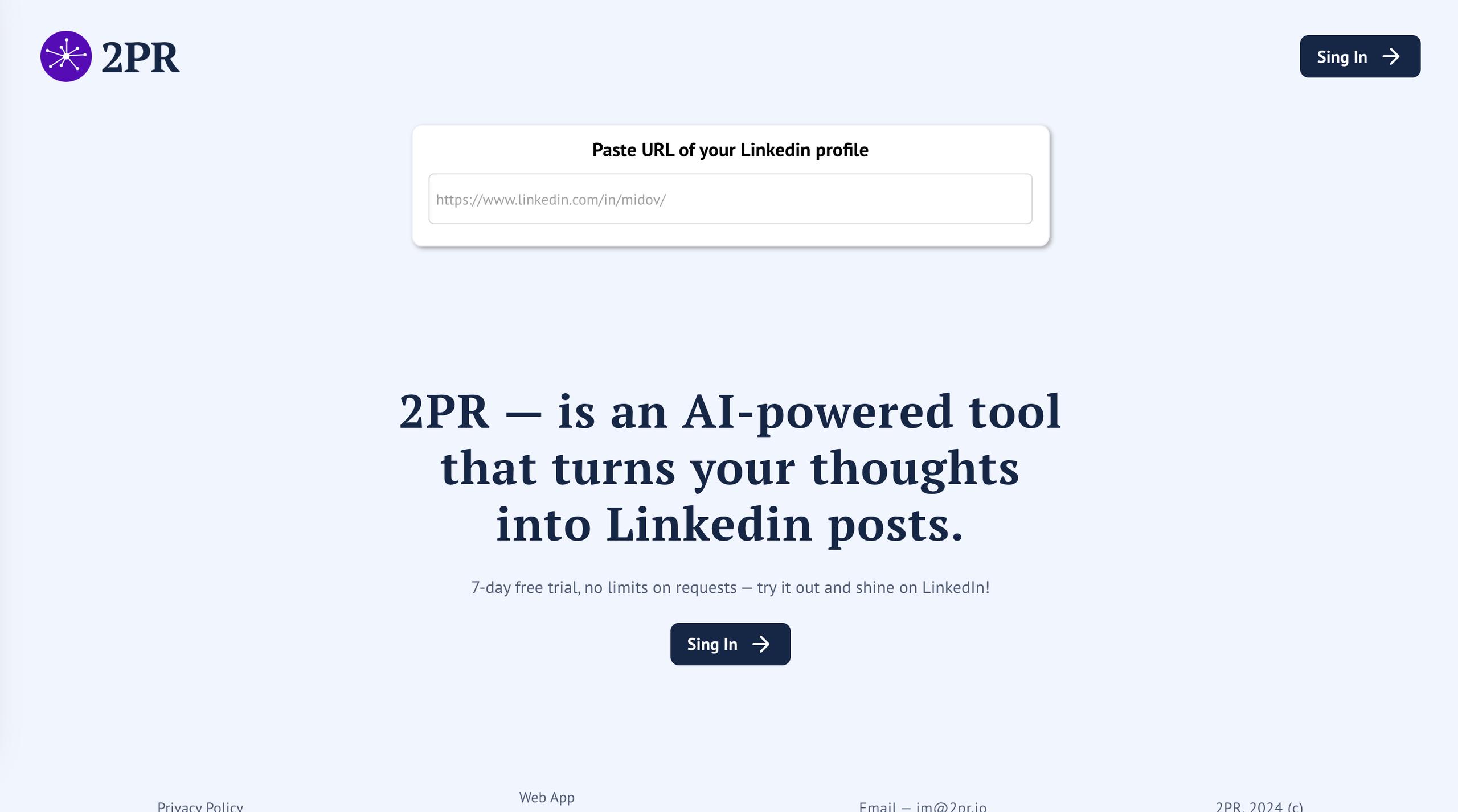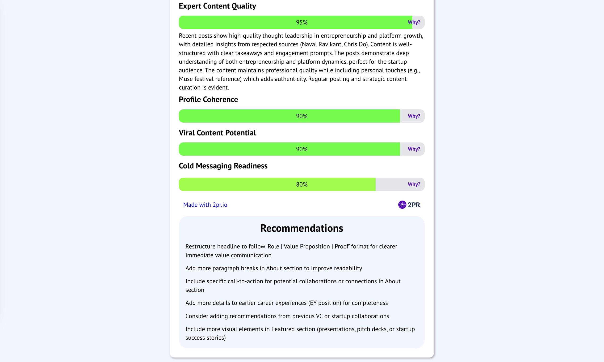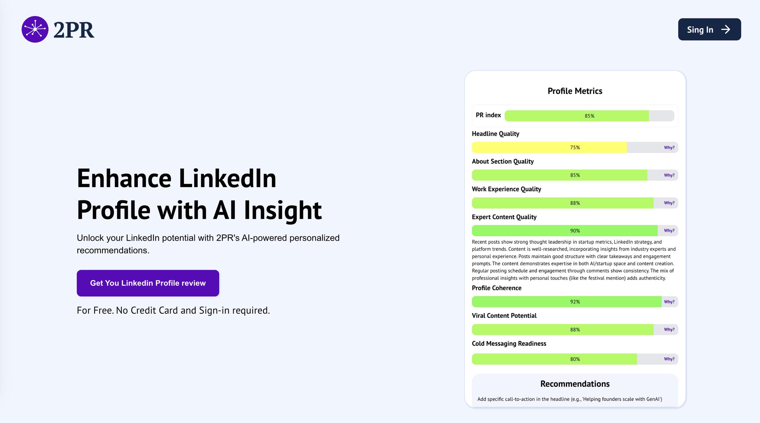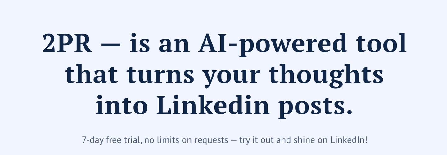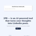 2PR Enhance LinkedIn Profile is the ultimate AI solution for crafting standout LinkedIn profiles. With personalized recommendations, it improves your profile’s content, increases searchability, and attracts recruiter attention.