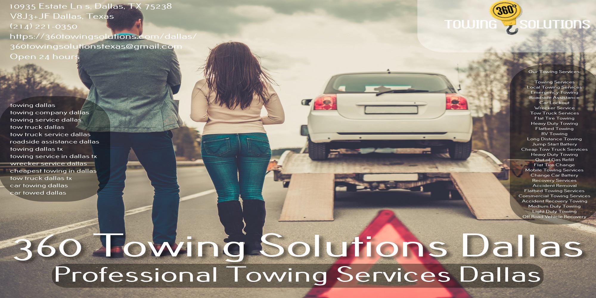 360 Towing Solutions Dallas provides 24-hour towing service, roadside assistance and emergency towing Services in Dallas, TX. Call NOW: (214) 221-0350 for the best towing services and roadside assistance in Dallas, Texas and surrounding areas.