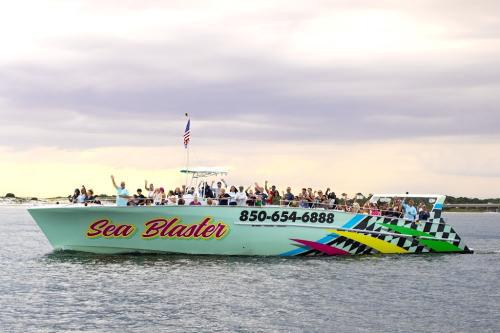 Adventures Aboard Sea Blaster is Destin's original and premier choice for fun-filled dolphin tours, snorkeling trips, and sunset cruises. Family-friendly and locally owned, our bright red boats welcome guests of all ages to explore the Emerald Coast in comfort and style. Every cruise includes free beer, wine, soda, and water, plus restrooms onboard for men and women. Kids can even take the wheel as honorary captains! Whether you're looking for a stimulating dolphin sighting excursion, a relaxing Destin harbor tour, an exciting snorkeling adventure, or a romantic sunset cruise, Sea Blaster delivers unforgettable memories on the beautiful Gulf waters and Destin Harbor. Perfect for families, large groups, and special celebrations. Book now!
