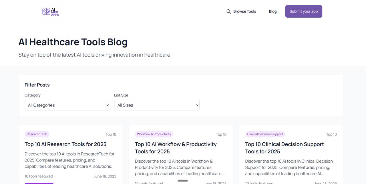 AIMedApps is the AI application directory built specifically for the healthcare and research community. Designed as a trusted resource, it showcases vetted AI tools that support a wide range of clinical and research workflows. Whether you're enhancing diagnostics, streamlining administrative tasks, or conducting complex studies, AIMedApps helps you find the right solutions. The platform includes robust filtering by specialty, modality, compliance, and target user. Healthcare organizations use AIMedApps to stay ahead of innovation and adopt AI safely and effectively. Our directory is constantly evolving to reflect regulatory changes and technological advancements. Explore smarter healthcare solutions with AIMedApps as your guide.