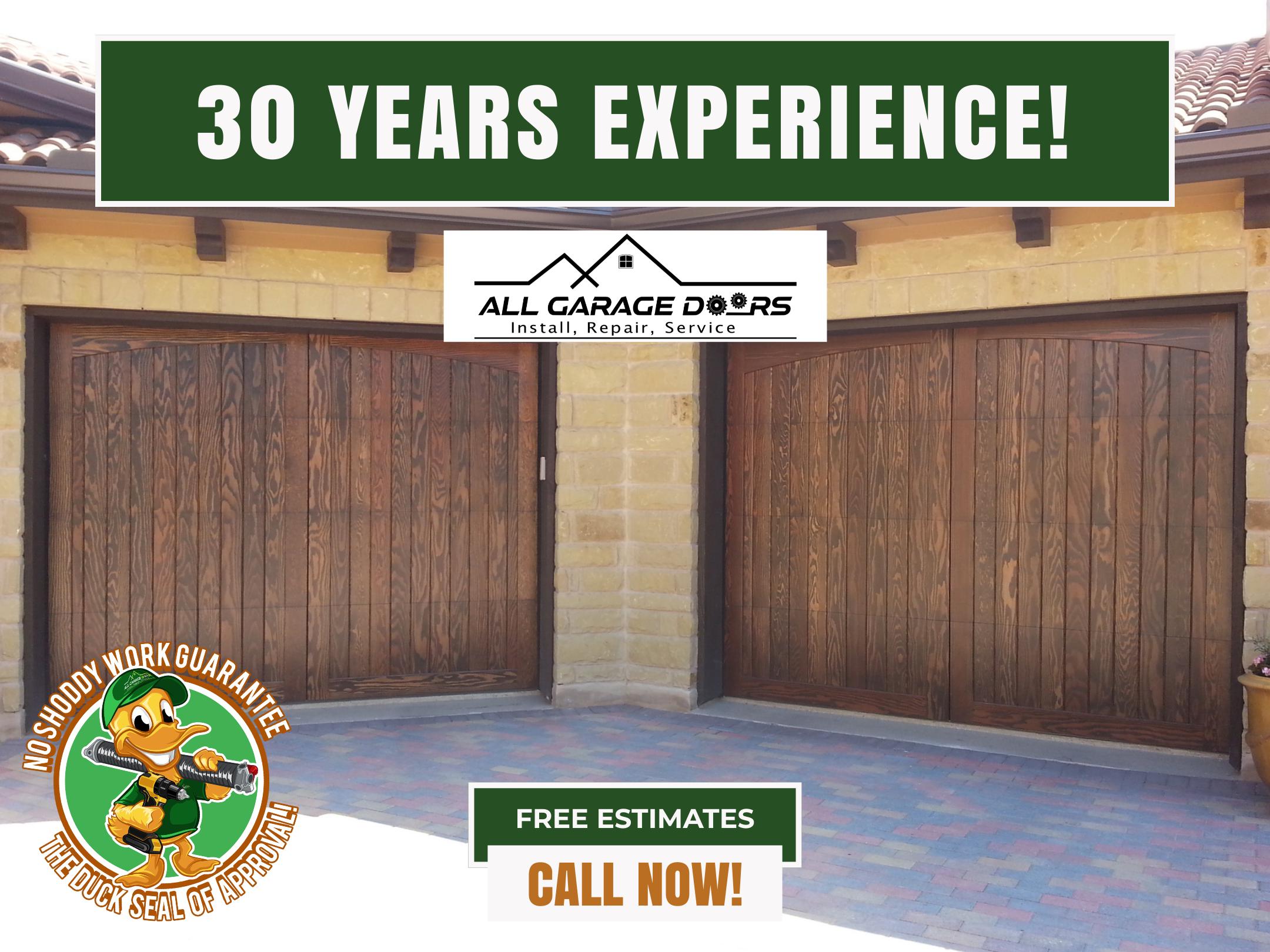 All Garage Doors, LLC is a family-owned business serving Central Texas. We offer 30 years of experience and specialize in everything from garage door sales, installation, replacement, and repair for both residential and commercial properties. Our expertise includes installing high-quality overhead doors, high-lift doors, roll-up doors, and custom garage door systems. In addition to installations, we provide reliable garage door repair services, including spring repairs, new door opener installation, repair, and replacement, ensuring your doors operate safely and smoothly. Every project is backed by our No Shoddy Work Guarantee, giving you peace of mind. Call today for a free estimate.
