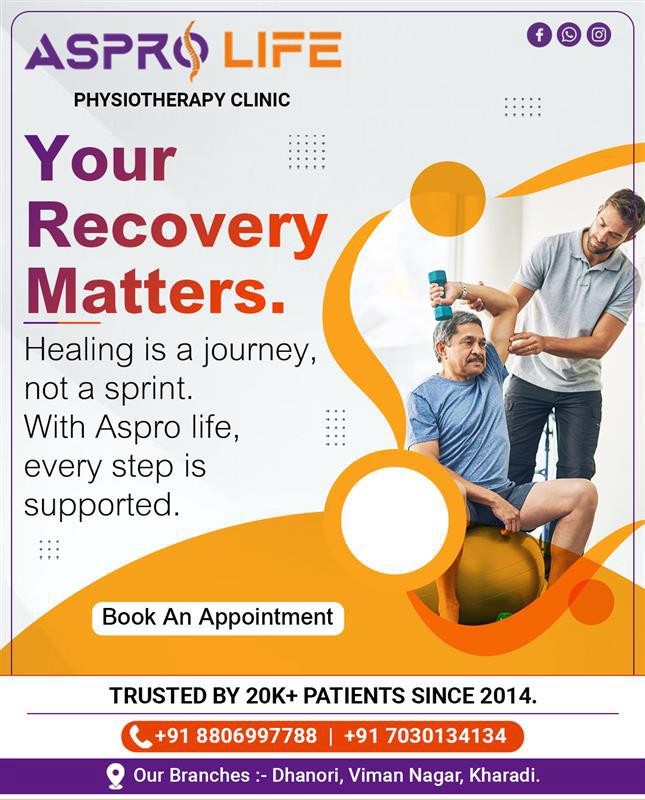 Aspro Life Physiotherapy Clinic, located in Viman Nagar, Pune, is recognized as one of the best physiotherapy centers in Pune, offering advanced and result-oriented treatments for pain relief, injury recovery, and physical rehabilitation. Established in 2014, we have successfully treated over 12,000 patients, helping them regain strength, mobility, and an active lifestyle — often without the need for surgery.