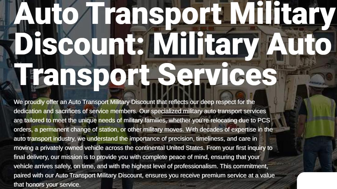 Auto Transport Military Discount Professional Services