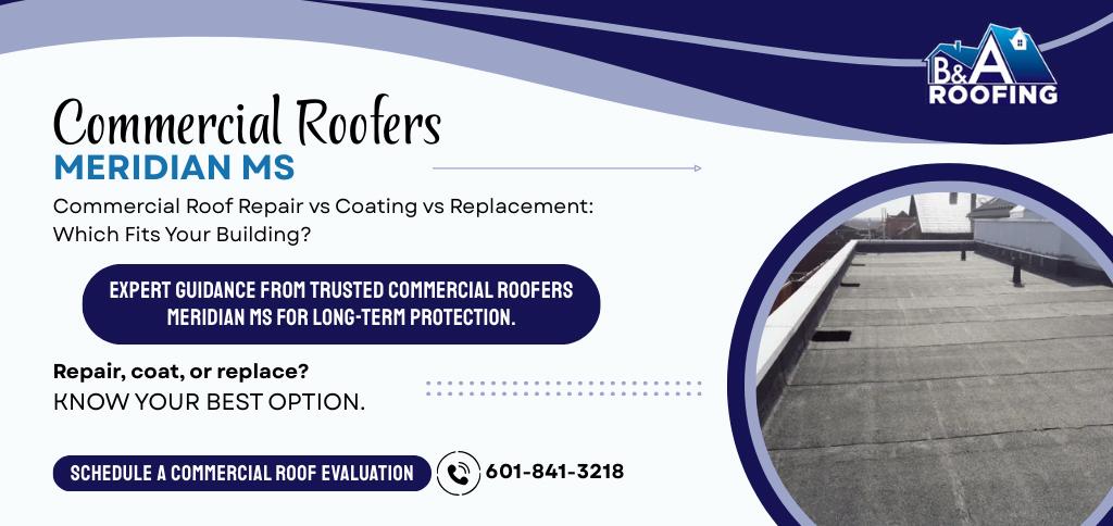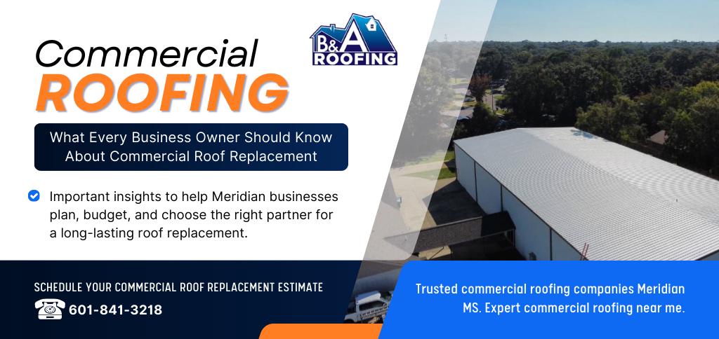 At B&A Roofing, we are dedicated to providing top-notch roofing solutions for both residential and commercial properties throughout Meridian, MS, and the surrounding areas. With a specialization in asphalt roofing and advanced commercial roof systems, we ensure that every project is completed with the highest level of craftsmanship and quality. Whether you need a new roof installation, routine maintenance, or repairs, our experienced team is here to deliver reliable and efficient service tailored to your specific needs. We understand that roofing issues can arise unexpectedly, which is why we offer emergency roofing services to address urgent situations promptly and effectively. Trust B&A Roofing for all your roofing needs.