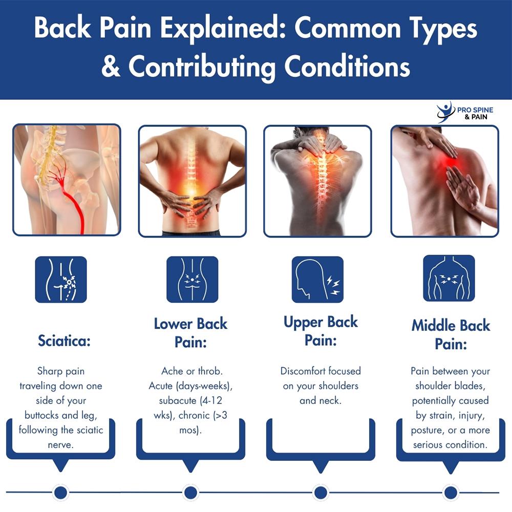 Back pain is a common and often debilitating condition that affects millions of people worldwide. It can arise suddenly or develop gradually, impacting individuals of all ages and lifestyles. Back pain can seriously hinder an individual’s daily activities and can take various forms depending on its location and underlying cause, such as: