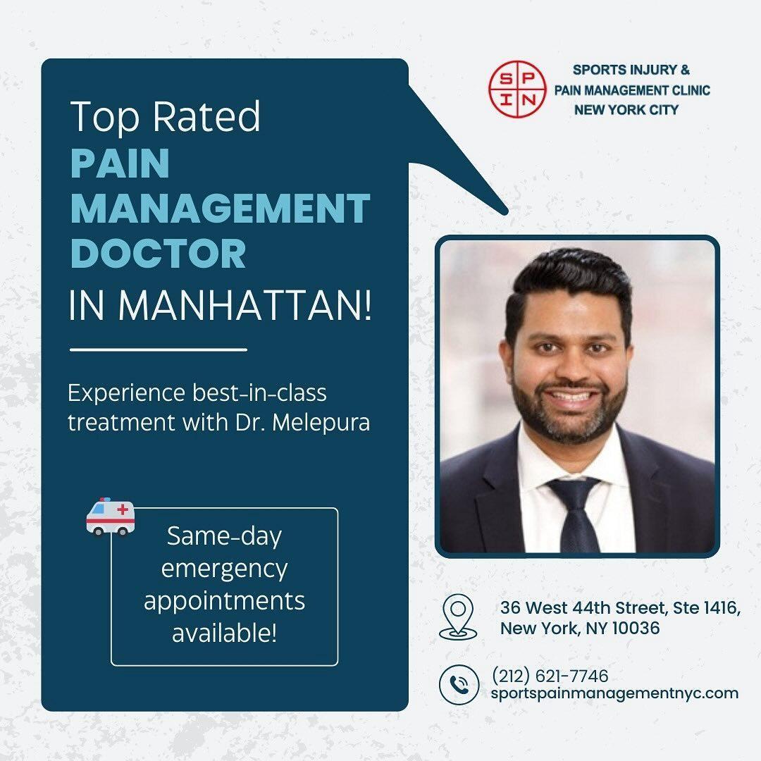 Do you suffer from chronic or acute back pain, back injury, and backaches that affect your daily life? Whether it’s from an injury, poor posture, or an underlying medical condition, back pain can be debilitating. Dr. Febin Melepura, an Ivy League-trained sports injury doctor and a highly regarded pain management specialist, offers comprehensive diagnostic and treatment options for patients in New York City and surrounding areas. With both minimally invasive treatments and innovative therapeutic techniques tailored to your needs, Dr. Melepura and the team at Sports Injury & Pain Management Clinic of New York are here to help you find relief. Contact Dr. Melepura’s team today!