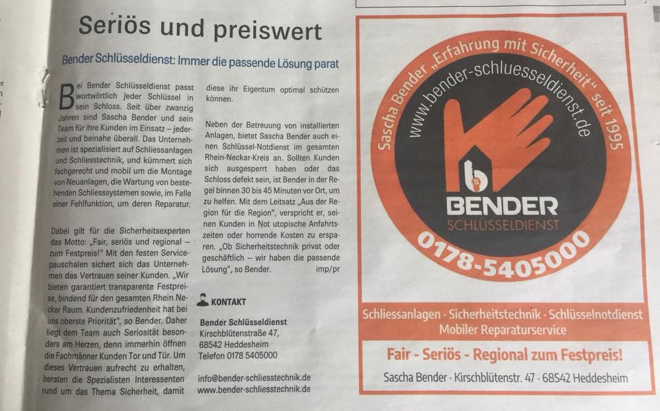 Bender Schlüsseldienst Mannheim