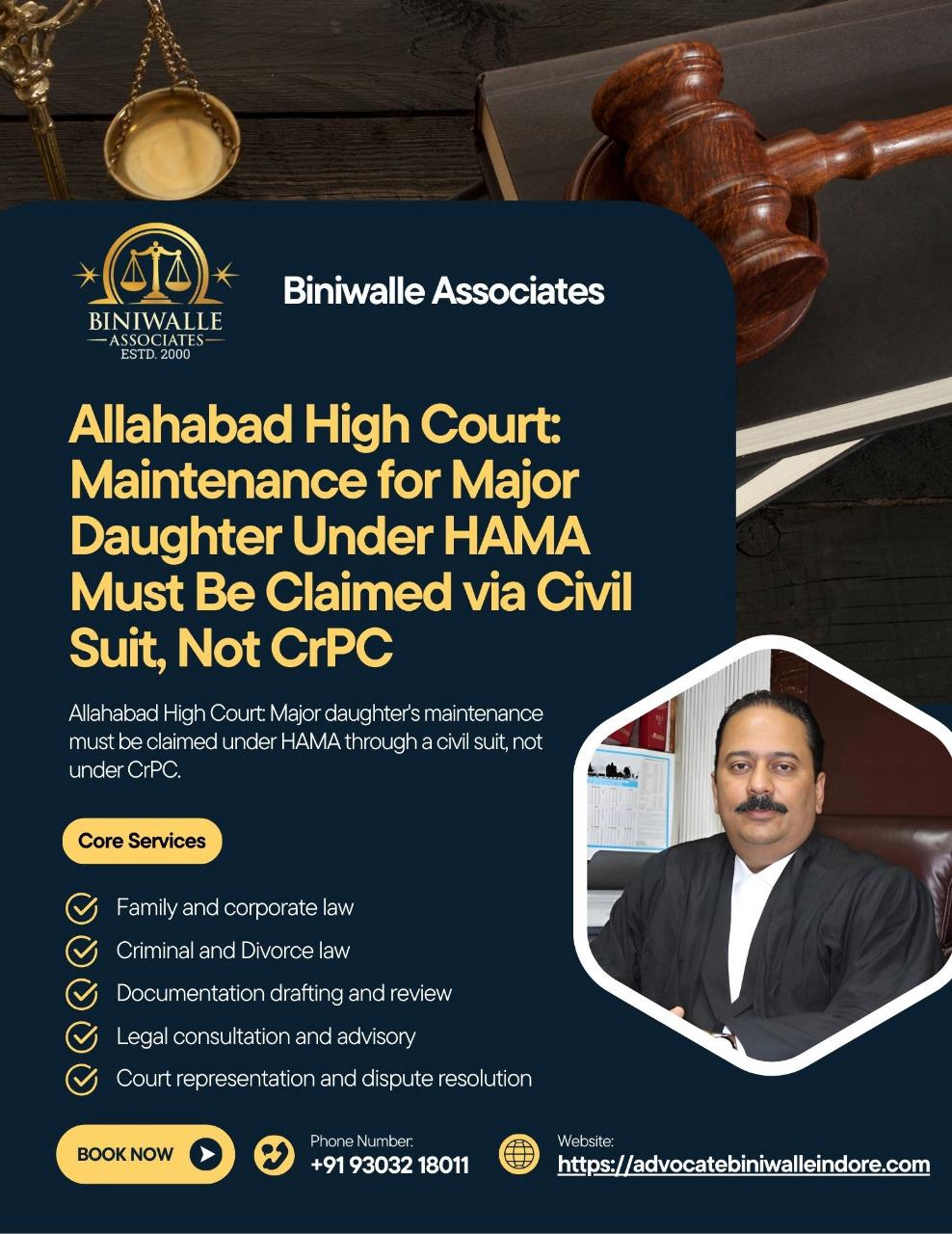 Biniwalle Associates is a leading legal firm based in Indore, known for its commitment to excellence and client advocacy. The principal advocate is a Life Member of the High Court Bar Association and an esteemed member of the Supreme Court Bar Association.