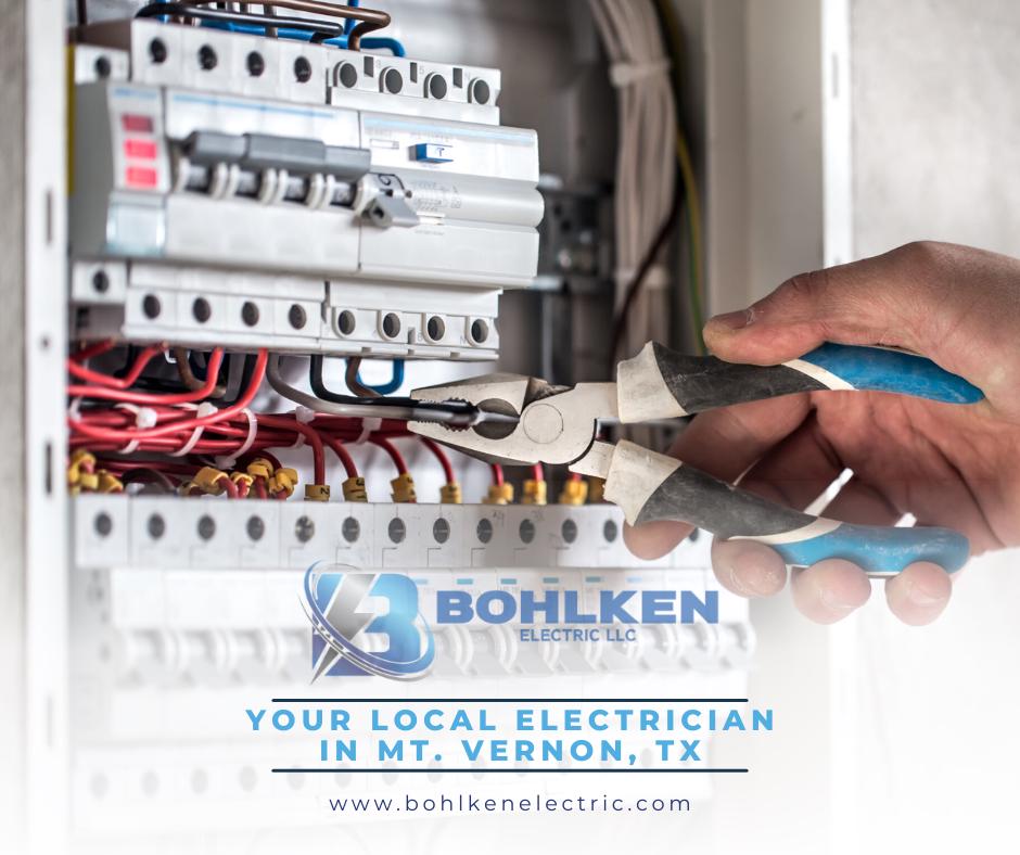 Bohlken Electric is a family-owned electrical contractor based in Mount Vernon, TX, serving homeowners and businesses across East Texas. With over 30 years of experience, we provide expert residential wiring, lighting upgrades, panel replacements, and full commercial electrical services. We’re also certified Generac installers offering standby generator installation and maintenance. Licensed and insured, Bohlken Electric delivers reliable, code-compliant solutions and 24/7 emergency service for your peace of mind.