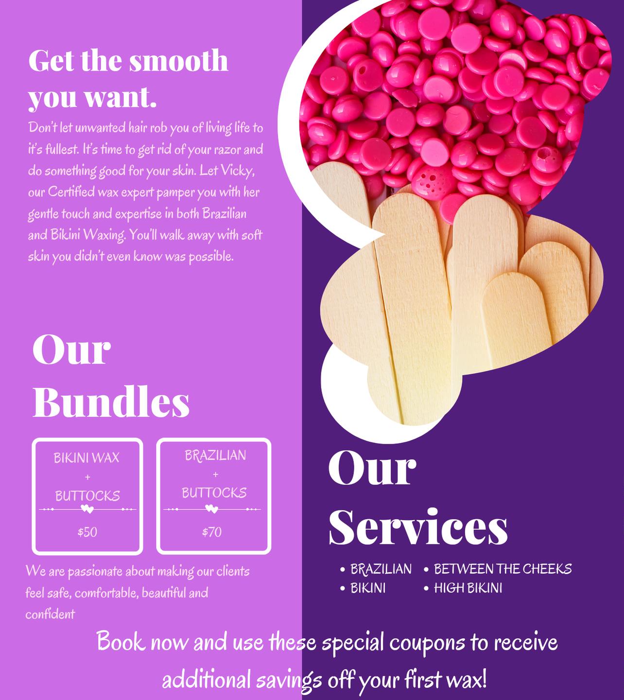 Its a Beauty Waxing Salon focusing on and specializing in Brazilians Waxes. With limited services for men. Offering only services using wax to remove hair.