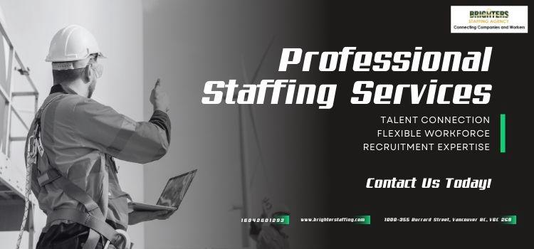Brighter Staffing Services is your trusted professional recruitment agency, dedicated to providing top-quality workforce solutions that help businesses thrive. We specialize in professional staffing services, temporary staffing services, and flexible workforce solutions designed to meet the dynamic needs of various industries.From on demand construction labour workers to skilled and unskilled workforce solutions, we deliver reliable, pre-screened candidates ready to contribute from day one. Whether you need short-term support, project-based staffing, or long-term hires, our team works closely with you to provide tailored solutions that align with your goals.At Brighter Staffing Services, we understand that the right talent makes all the difference. That’s why we are committed to sourcing dependable professionals and labor workers across sectors — ensuring efficiency, productivity, and peace of mind for your business.