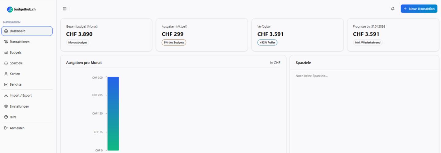 BudgetHub is a modern Swiss budgeting and financial planning app designed to help individuals, couples, and families manage their finances simply, systematically, and securely.