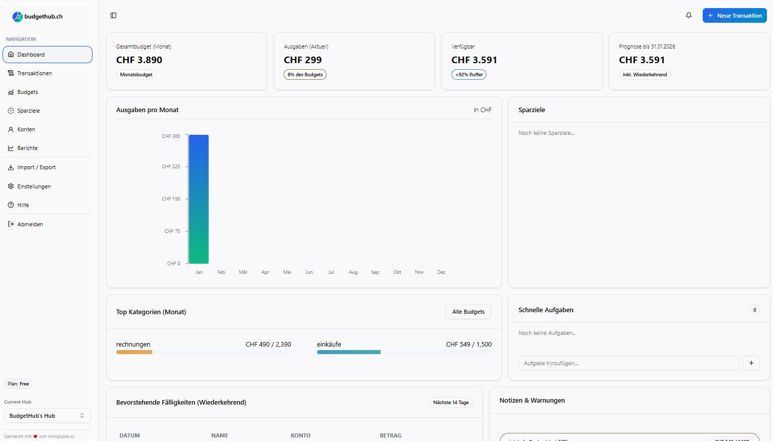 Whether as a digital alternative to the classic household book or as a central financial overview for the whole household: BudgetHub offers clarity, security and control over your own money.