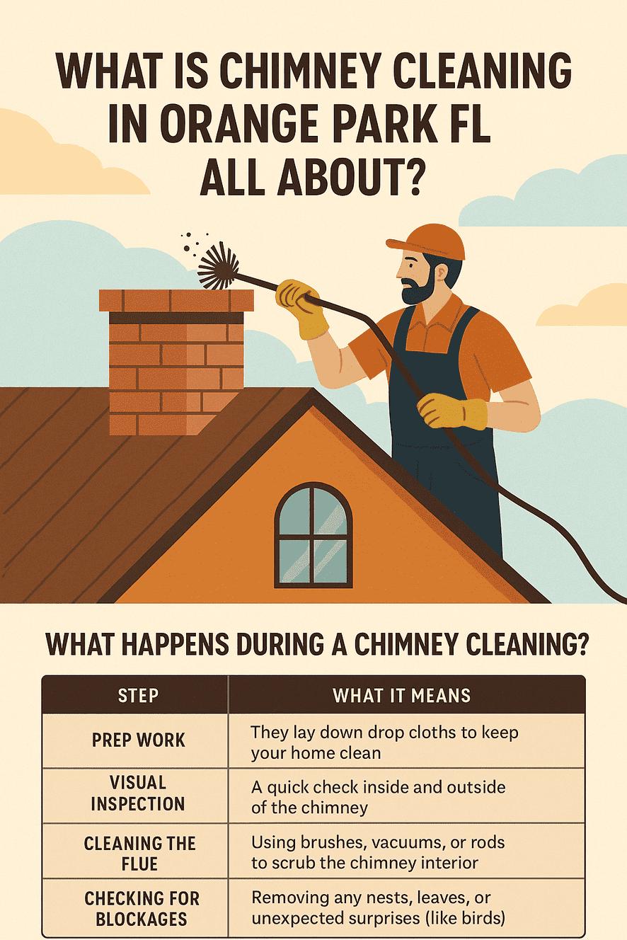 Keep your home safe and your fireplace running efficiently with professional chimney cleaning in Orange Park, FL. Our expert technicians remove soot, creosote, and blockages to prevent fire hazards and improve air quality.